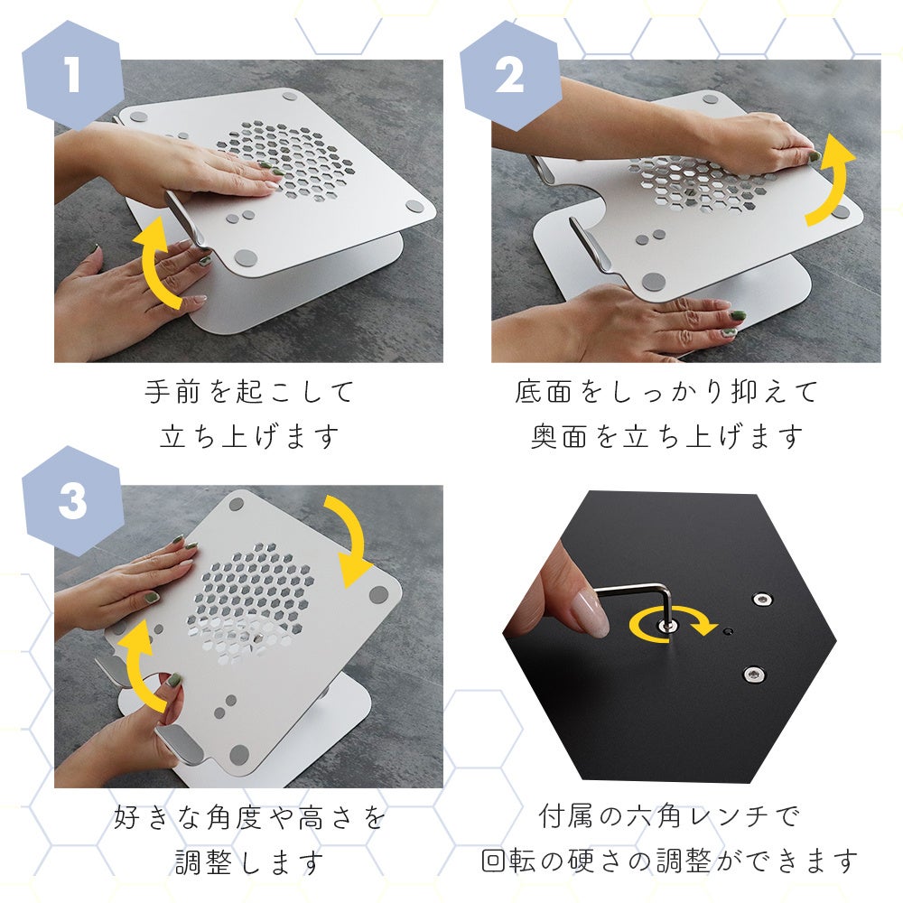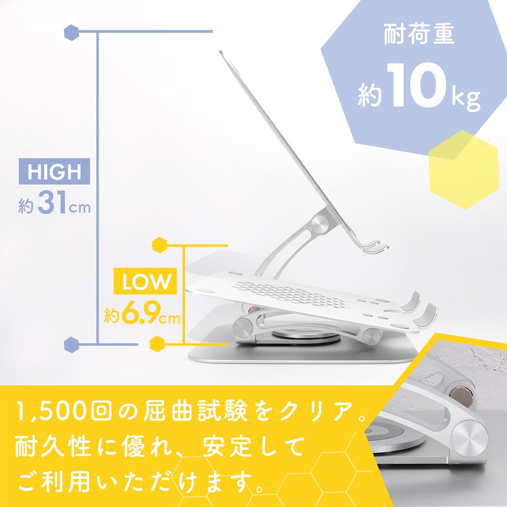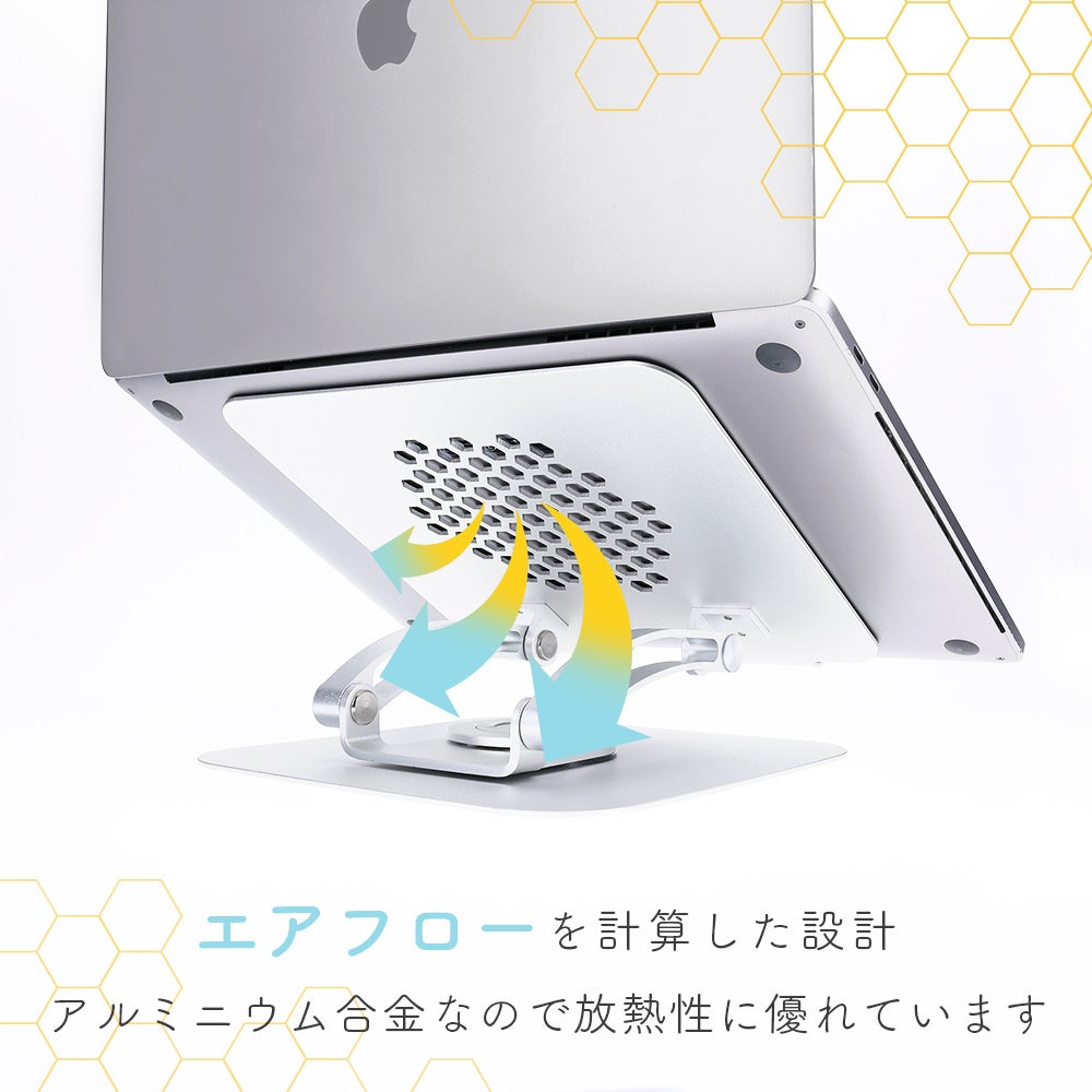 ・高さ調整可能で肩や背中への負担を軽減 360度回転ノートPCスタンド