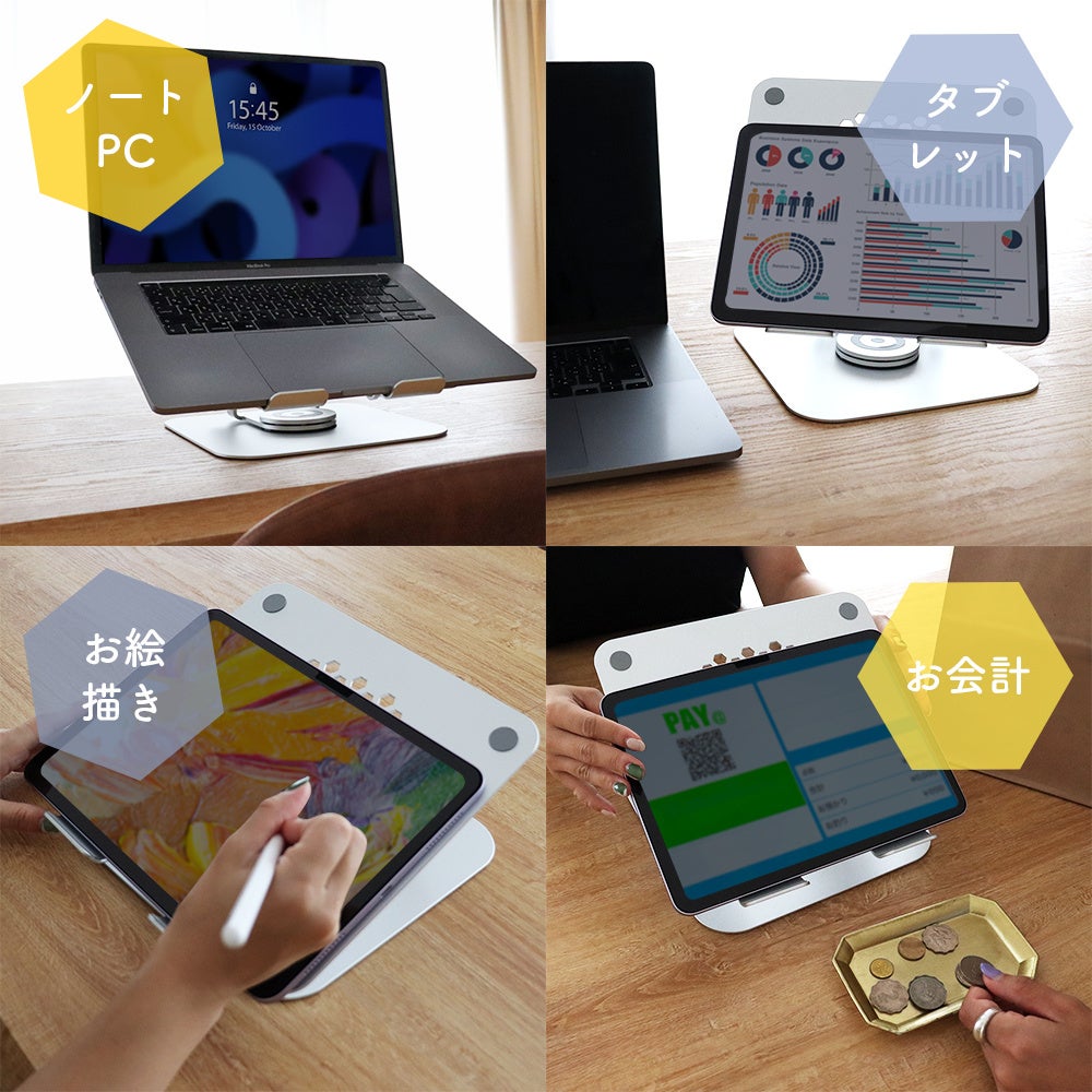 PCを置いてPCスタンドとして使用するだけでなく、タブレットを置いてモニター代わりやイラスト、読書をする際にも活躍してくれます。