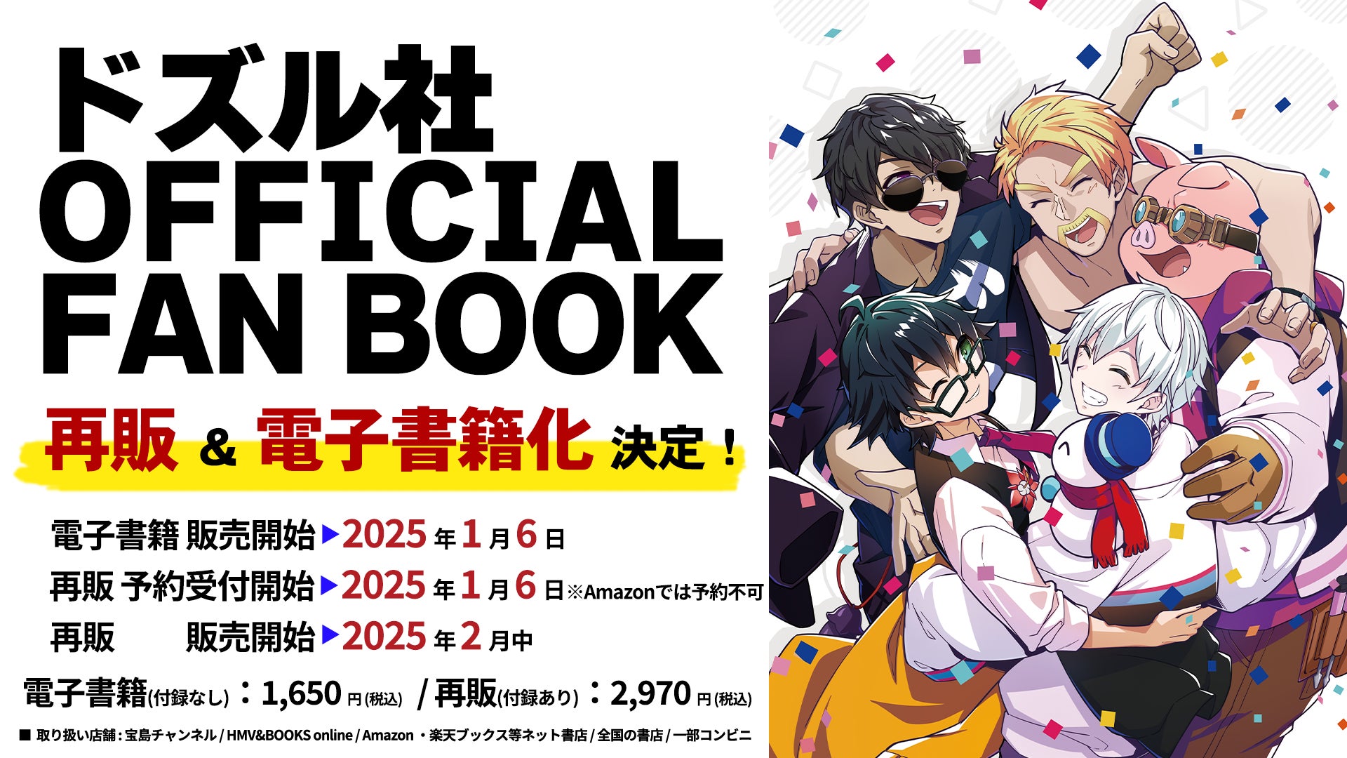 2023年10月にドズル社チャンネル登録者数100万人突破を記念して発売した公式ファンブック「ドズル社 OFFICIAL FAN BOOK」の再販と電子書籍化が決定しました。