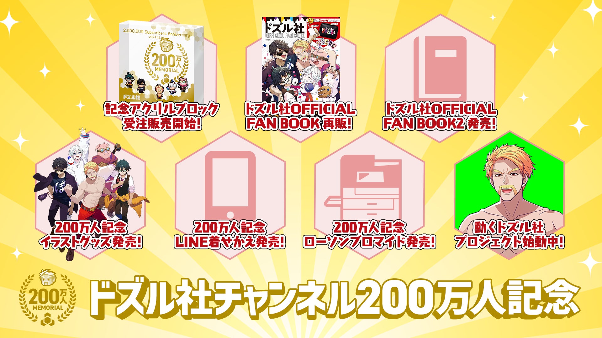 ゲーム実況グループ「ドズル社」のYouTubeチャンネル登録者数200万人突破を記念したグッズ発売や新プロジェクトを公開!