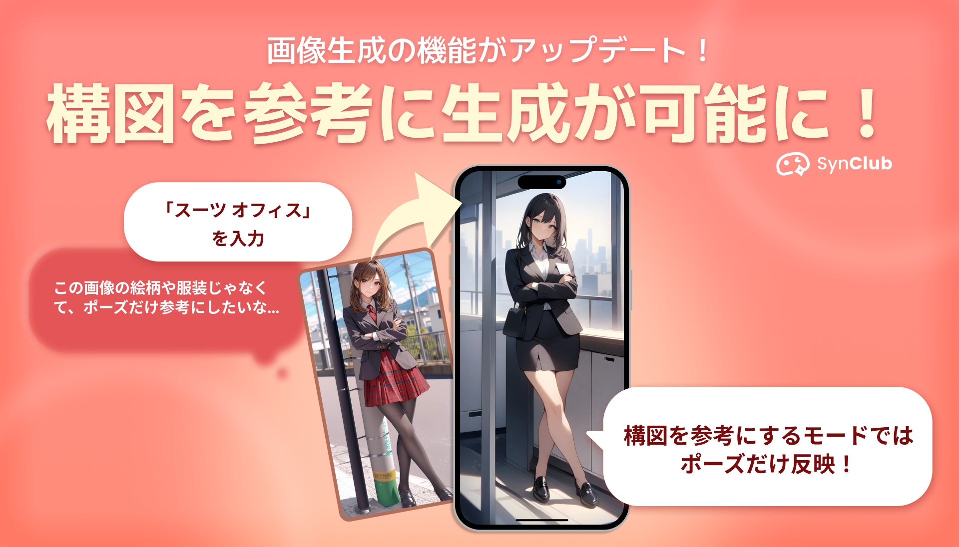 【画像生成機能がさらに進化!】AIチャットアプリ「SynClub」、指定した画像の構図を参考に生成できるモードが登場。より細かく参考にしたい箇所を指定可能に!