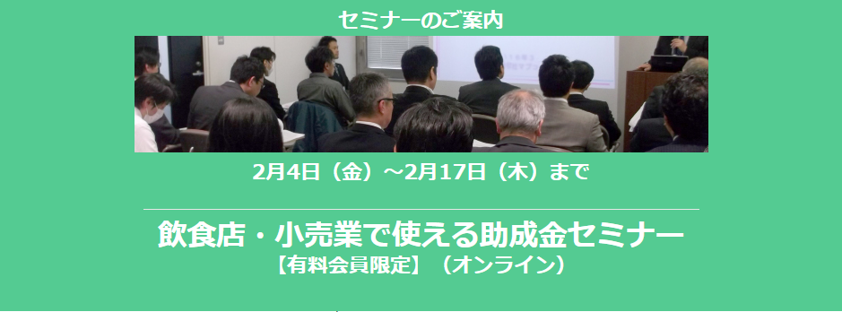「飲食業・小売業が使える助成金セミナー 2022年冬版(オンライン)」を、2月4日(金)~2月17日(木)まで期間限定でお届けいたします。