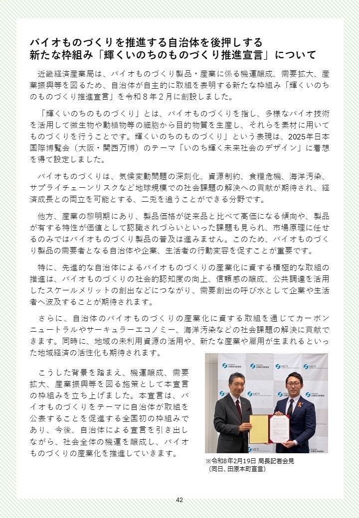 近畿経済産業局では、バイオの力による課題解決に向けた企業・自治体のバイオものづくり製品導入支援ガイドブックを公開しました。