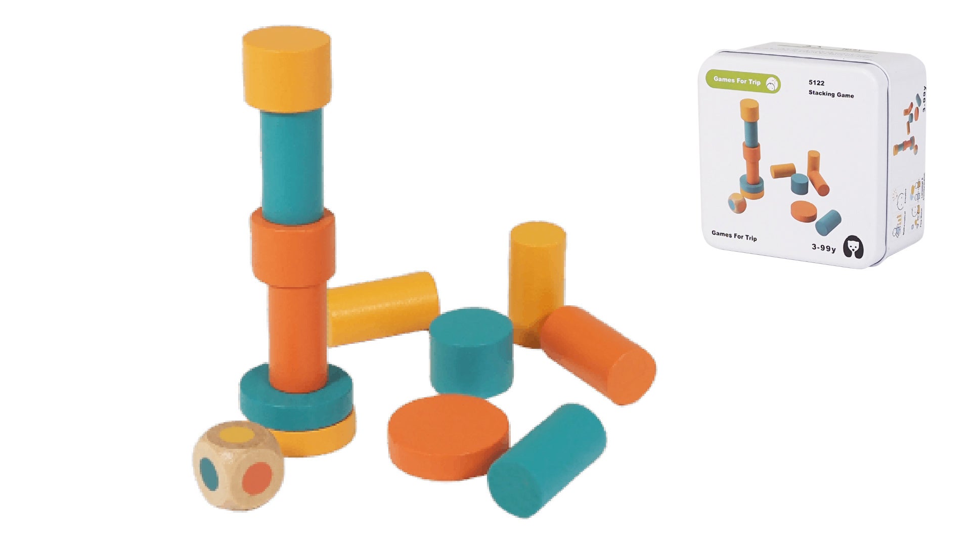 特徴:缶が可愛い、知育おもちゃがシリーズ展開!サイコロを振って出た色のブロックを積み上げてみよう。うまく最後まで積み上げられるかな?手先を動かすので、手先の感覚と集中力を遊びながら楽しく鍛えよう!