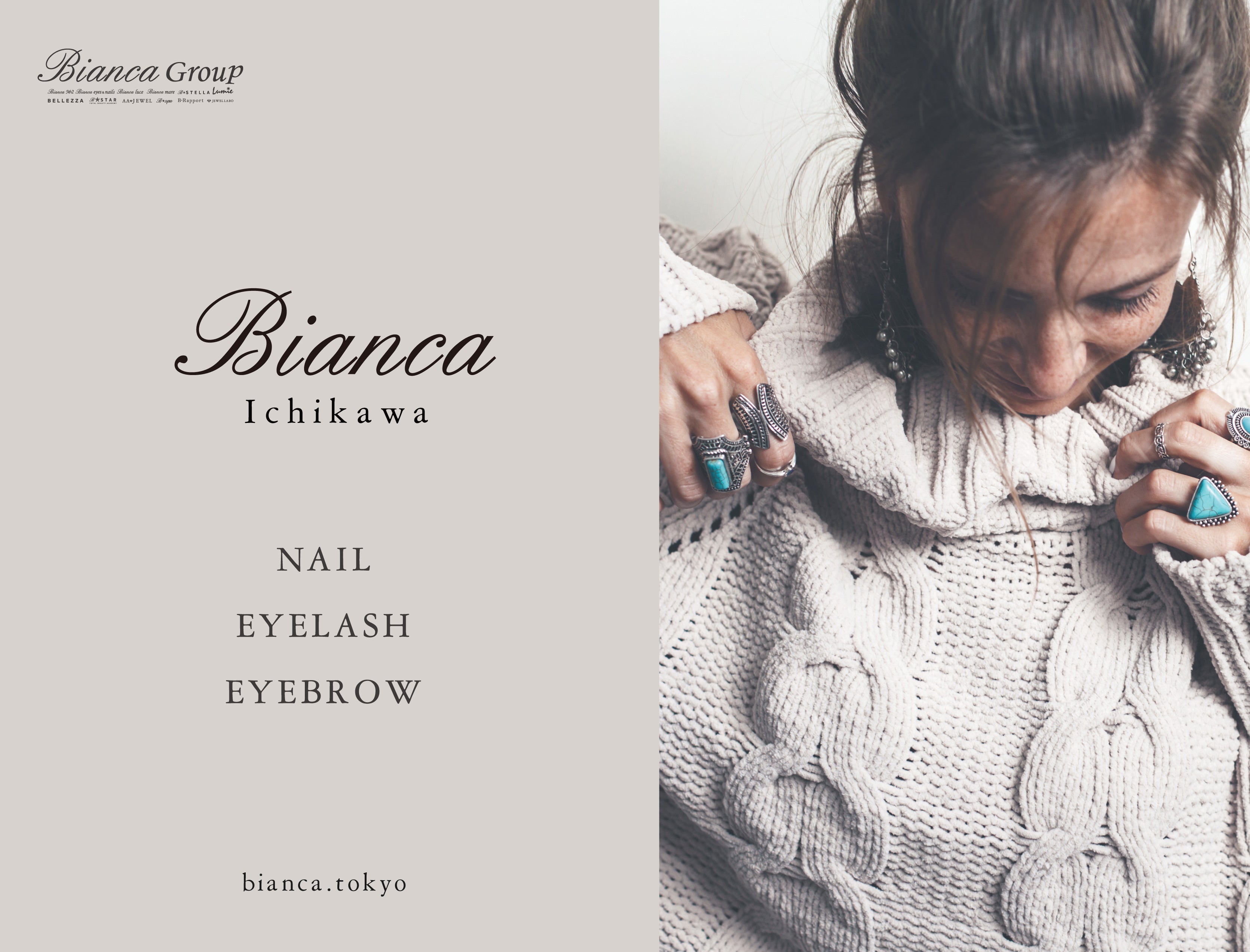 市川駅より徒歩4分の立地にオープンする「Bianca(ビアンカ)市川店」は、ネイル、まつ毛エクステ、パリジェンヌラッシュ、まつ毛パーマ、アイブロウメニューをご用意しております。経験豊富なスタッフが親切・丁寧なカウンセリングで、お客様のお好みに合わせたデザインをご提案します。