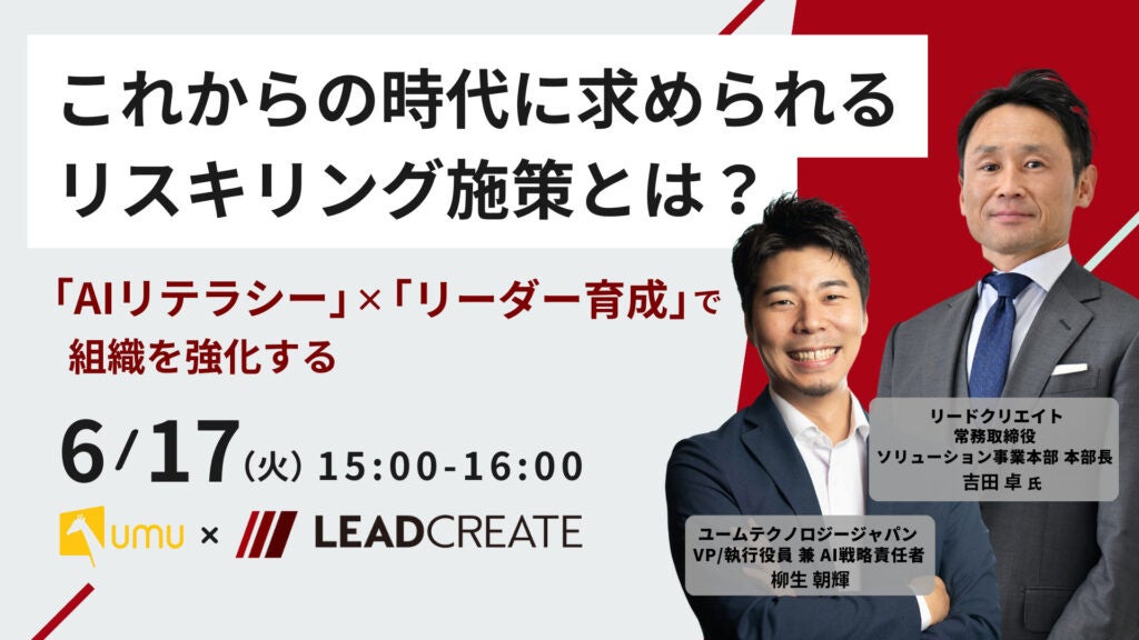 【リードクリエイト×UMU共催セミナー】これからの時代に求められるリスキリング施策とは?~「AIリテラシー」×「リーダー育成」で組織を強化する~