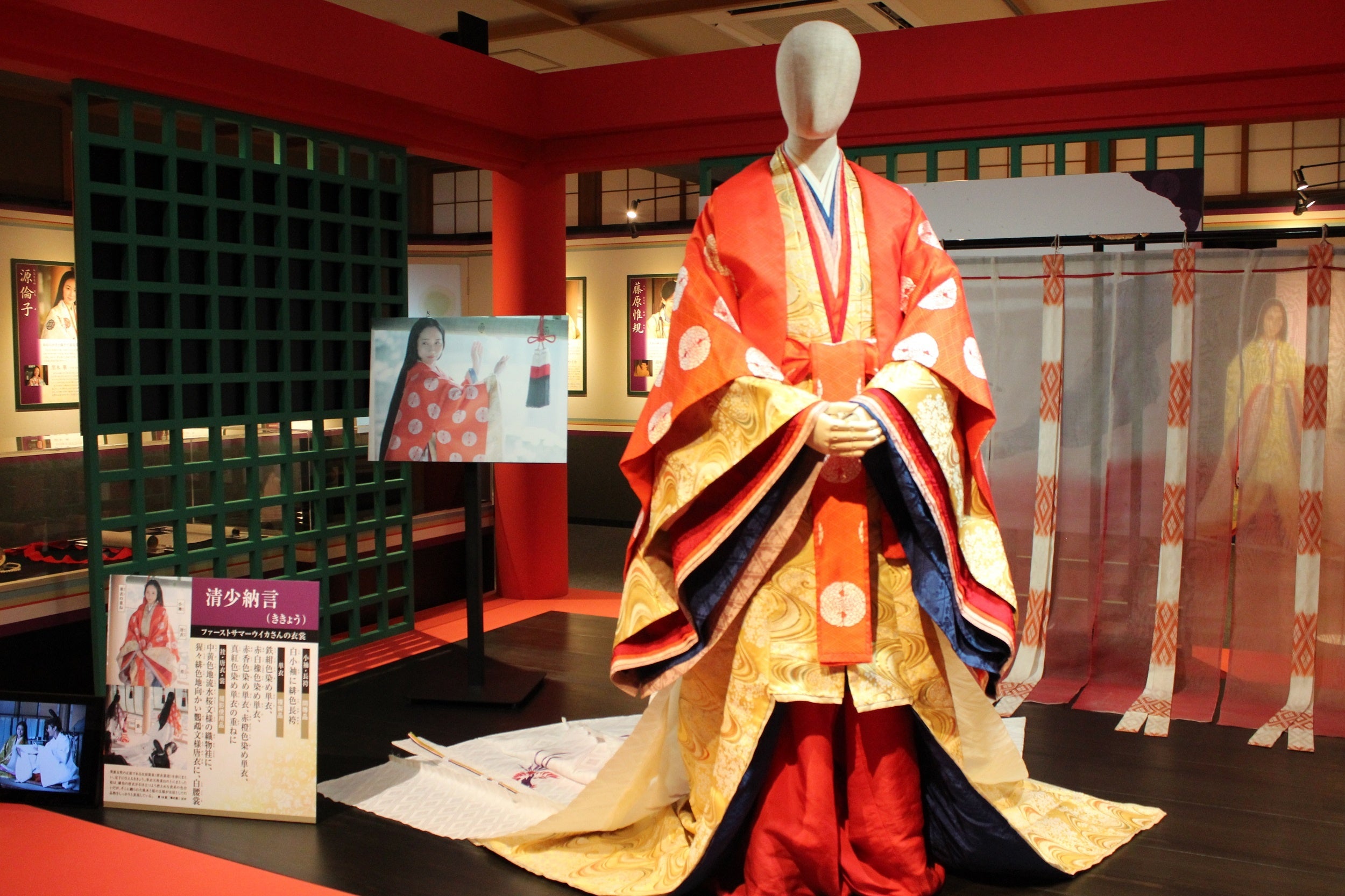 ● 「大河ドラマ館」では、ききょう(清少納言)の女房装束(十二単)、まひろ(紫式部)やききょう(清少