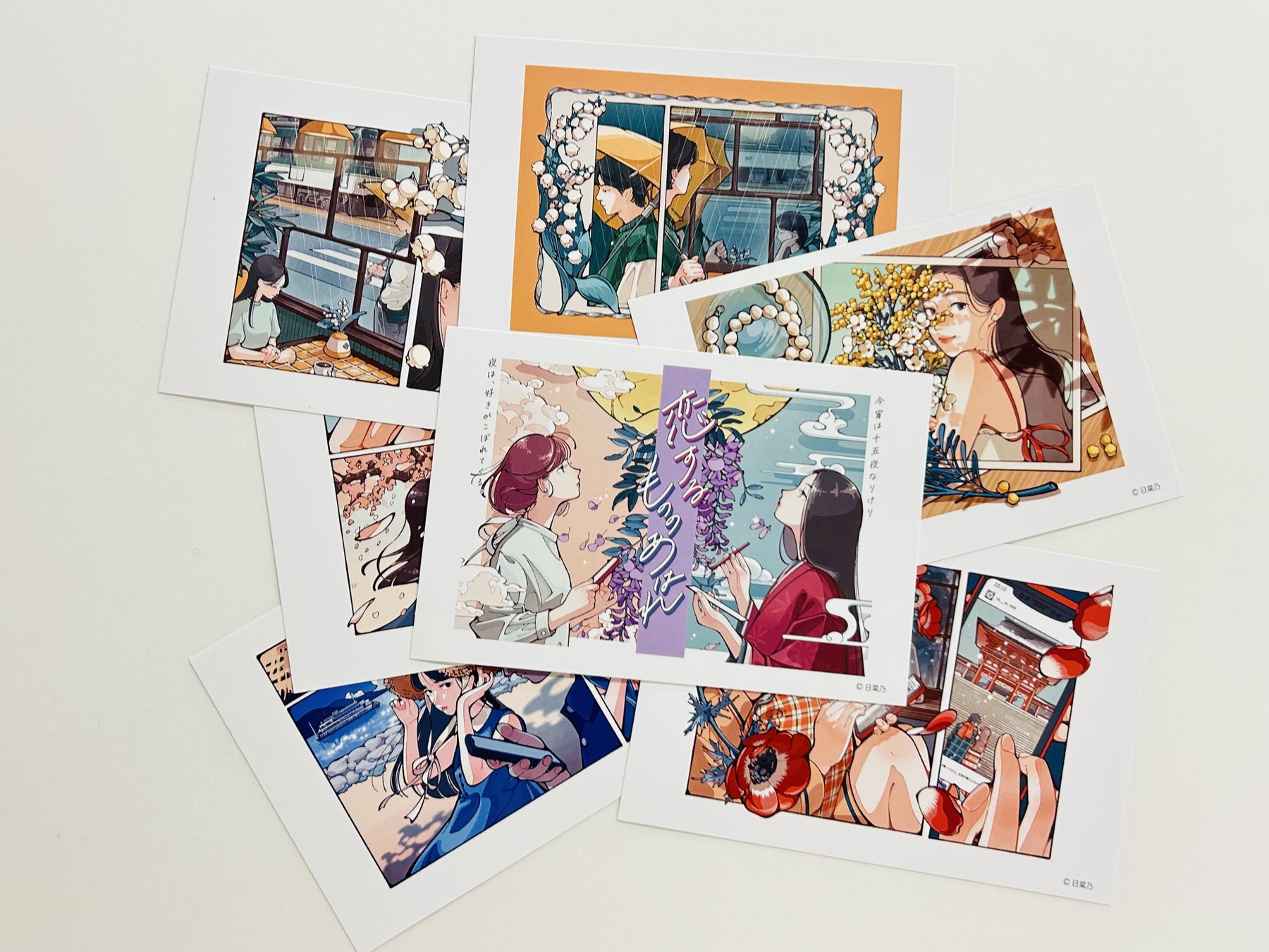 「心に秘めた恋」をテーマに選定された和歌を現代に置き換えてイラストで表現。イラストは全6種類。