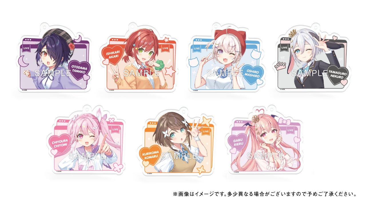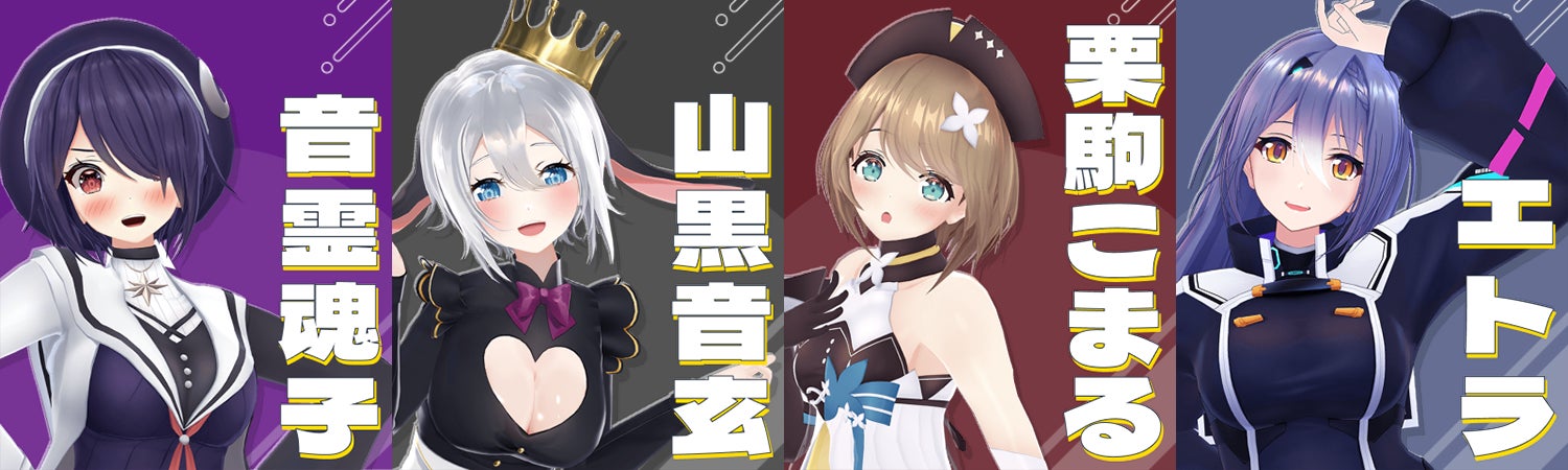 所属VTuber:音霊魂子、石狩あかり、大代真白、山黒音玄、栗駒こまる、千代浦蝶美、我部りえる、エトラ、春雨麗女(2023年7月時点)