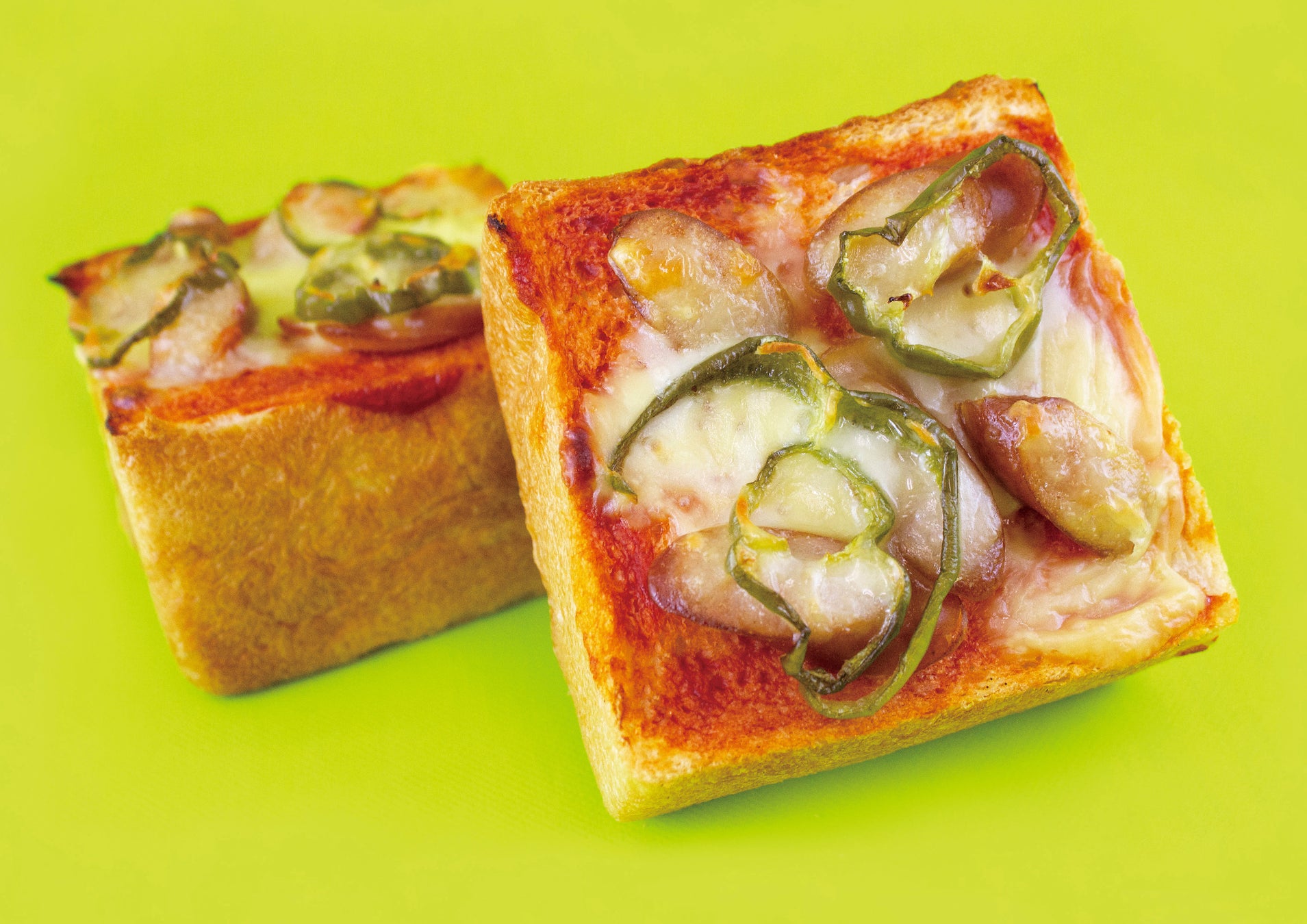 トマトケチャップ・ウインナー・ピーマンをトッピングし焼き上げました。ふかふかとした厚みのあるパンに、ケチャップの旨味が具材の美味しさを引き立てます。