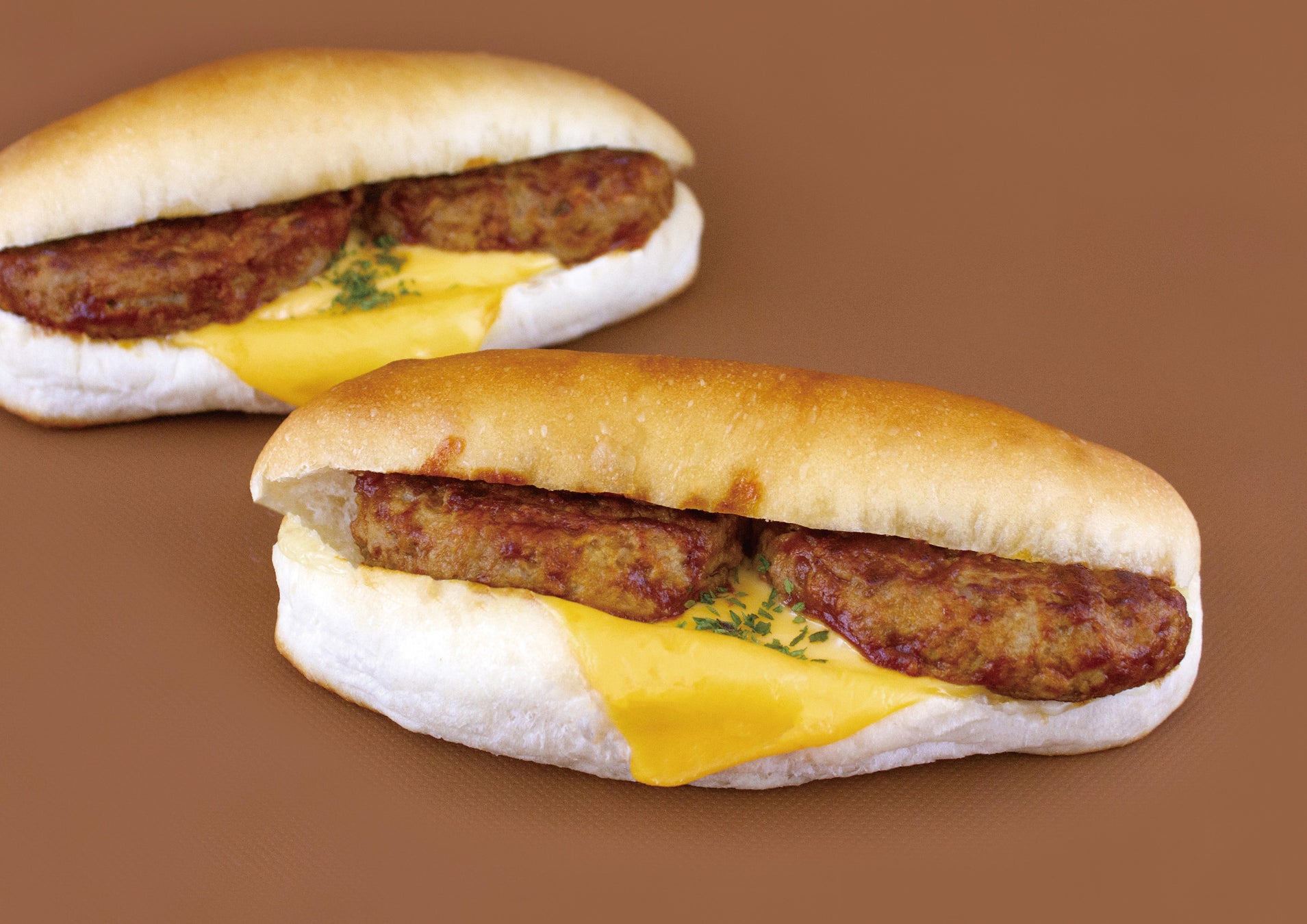 北海道産小麦を使用した生地にデミグラスソース・ハンバーグ・チェダーチーズをサンドし焼き上げました。ハンバーグはシンプルな味わいで、温めなおすとチーズがとろ~りとろけて美味しさ倍増です。