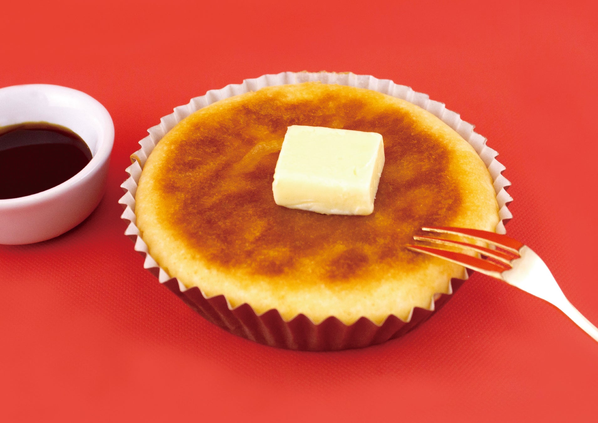 パンケーキにハニーメープルをかけ、バターをトッピングしました。メープルがしみ込んだふわっふわの甘い生地に、バターの塩気がたまらない一品です。