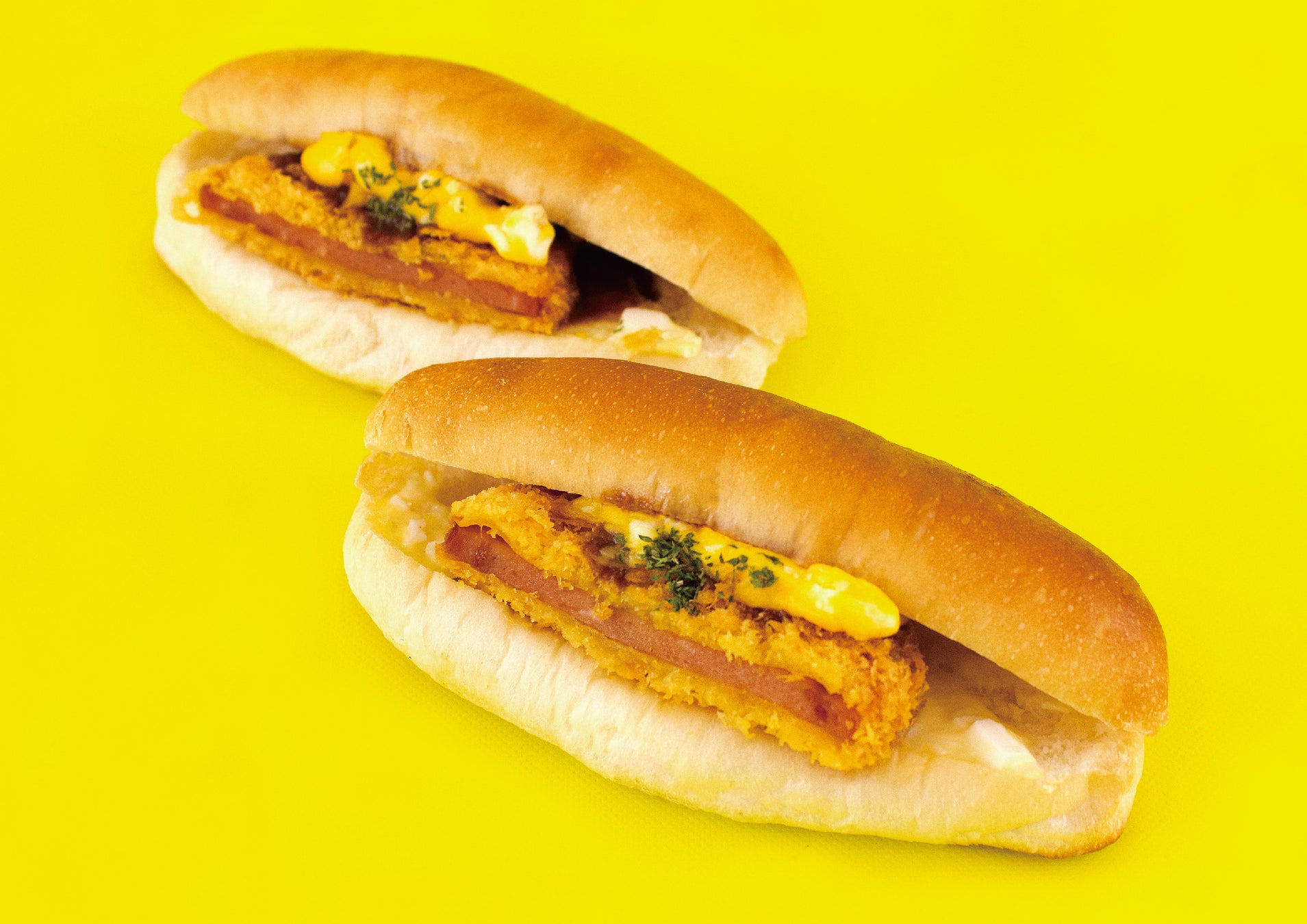 北海道産小麦を使用したバンズ生地にハムカツ・タマゴサラダ・タルタルソースをサンドし焼き上げました。ジューシーなハムカツにまろやかなタマゴサラダのコクがベストマッチ!