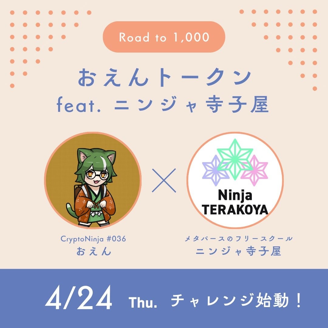 目標を達成すると、ニンジャ寺子屋独自のコミュニティトークン「おえんトークン feat. ニンジャ寺子屋」の正式発行・販売が可能になります。 -