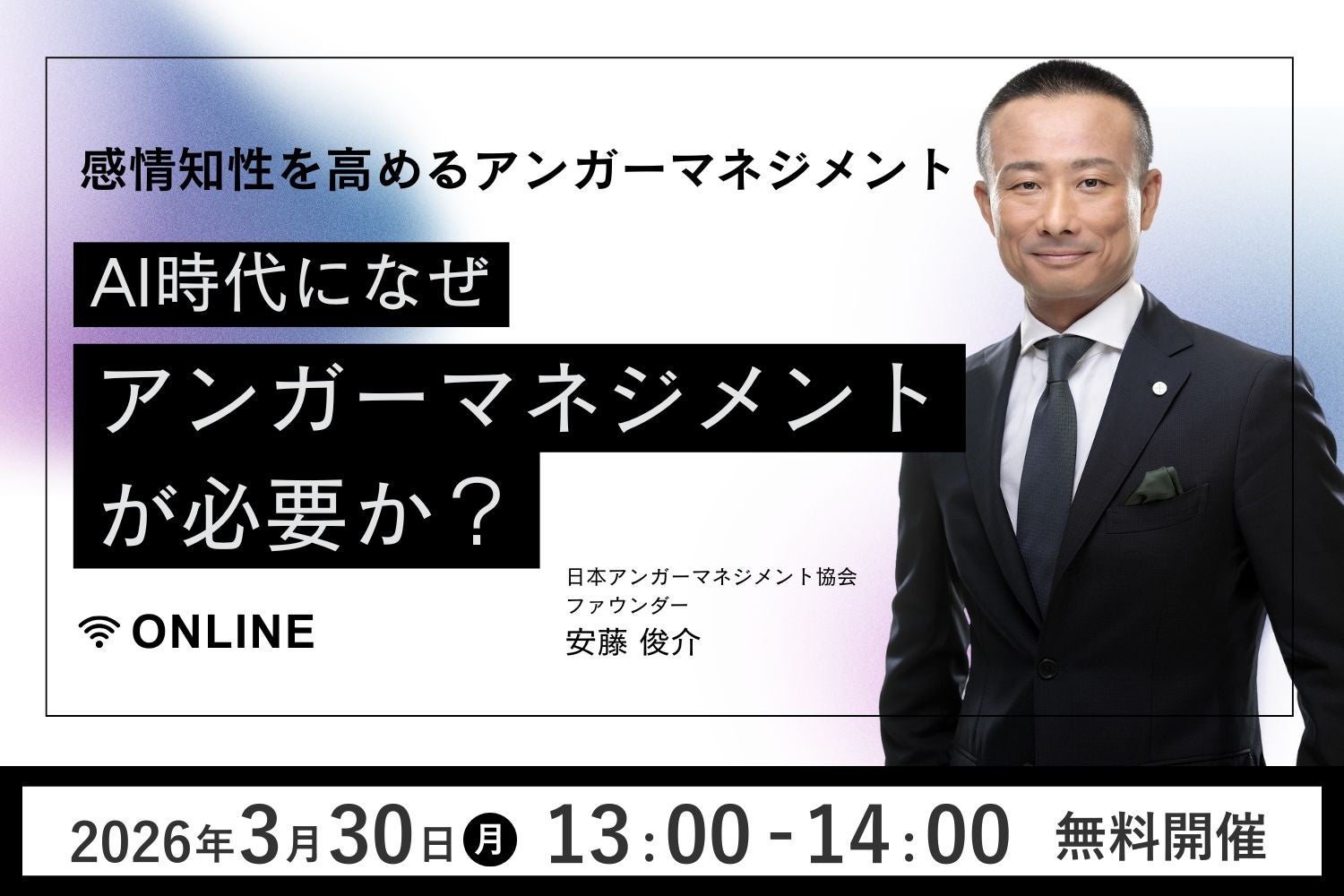 【好評につきアーカイブ配信決定】3月30日、アンガーマネジメントの第一人者・安藤俊介登壇「AI時代になぜアンガーマネジメントが必要か?感情知性を高めるアンガーマネジメント」無料オンラインセミナー開催