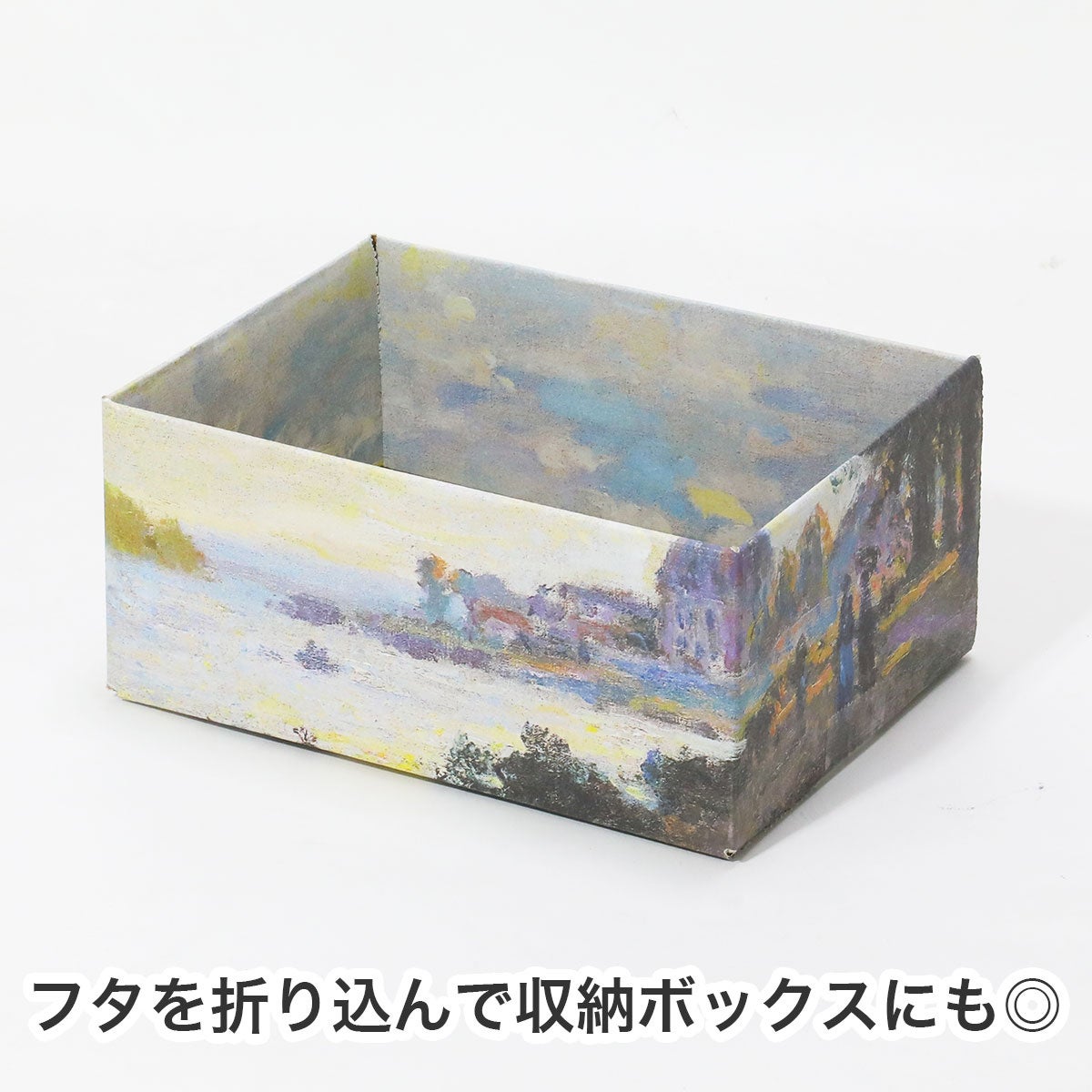 睡蓮をはじめ、クロード・モネの絵画作品がダンボール箱になって新登場。ダンボール箱をキャンバスに見立て、アースダンボール独自のフルカラー印刷で絵画を再現。