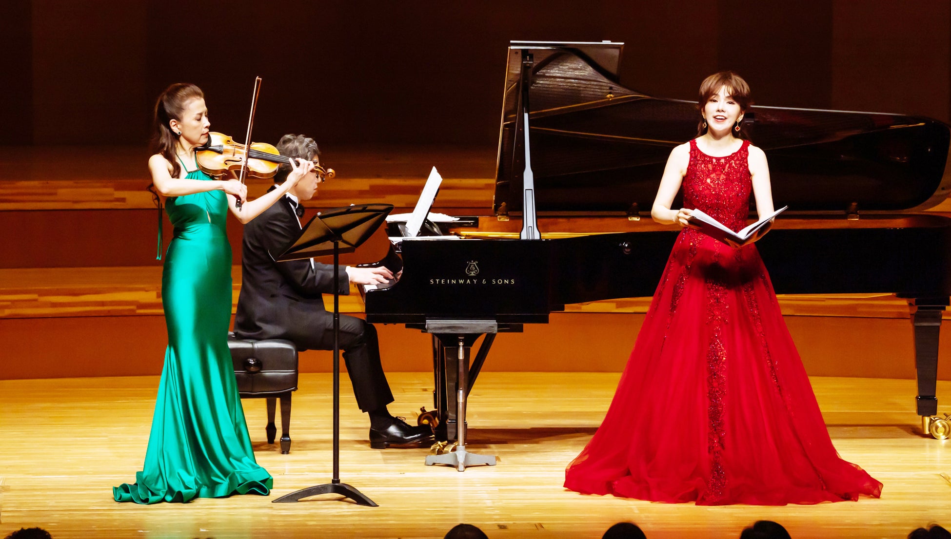 式典後は、恒例となった「癒しと安らぎの環境」チャリティコンサートを開催。ソプラノ・森麻季氏、ヴァイオリニスト・川井郁子氏、ピアノ・山岸茂人氏により数々の名曲が演奏され、医療従事者とその家族、患者合わせて1600名余りが一流アーティストによる卓越した音楽を楽しみました。
