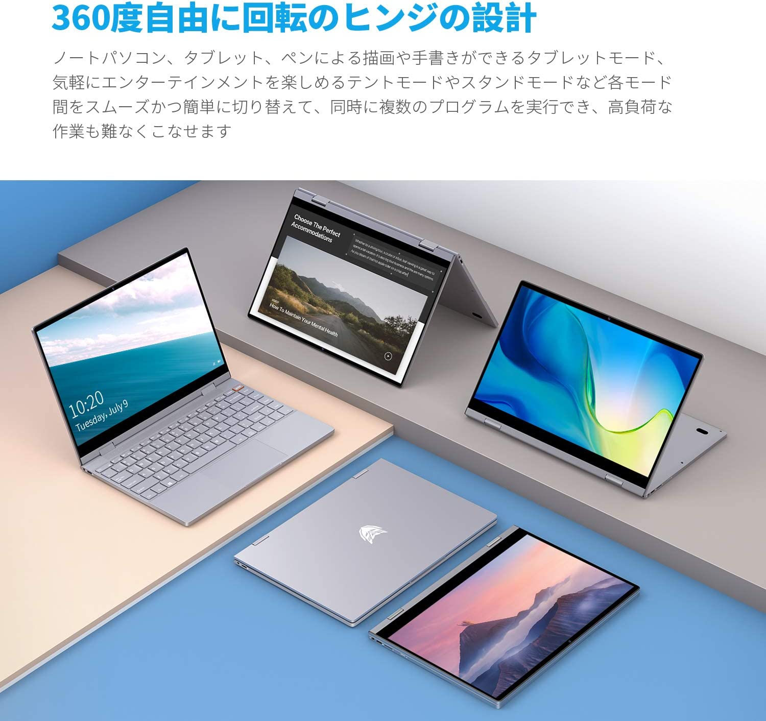 360度自由に回転のコンバーチブルラップトップ:BMAX Y13は360°コンバーチブルタッチスクリーンを採用し、ノートパソコンとタブレットの形式を自由に切り替えることができます。旅行中にテキストを書くて、電子メールを見って、君のFacebookを更新してきます。タブレット型でニュースを読んだり、イヤホンで音楽を聴いたり映画を見たりましょう。