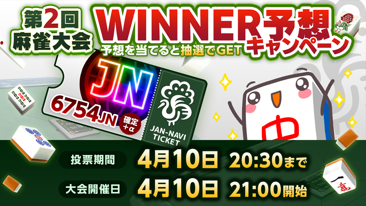 4月10日(水)に『第2回 ジャンナビ麻雀大会』が開催!勝者を予想して1万円分のJNトークンが当たるキャンペーンも開催!