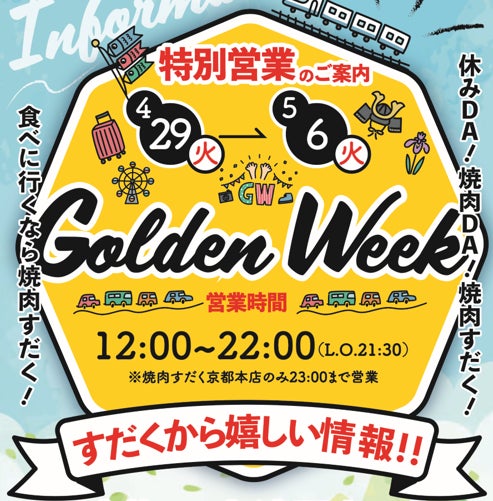 【焼肉すだくグループ】ゴールデンウイーク(2025年4月29日~2025年5月6日)特別営業のお知らせ