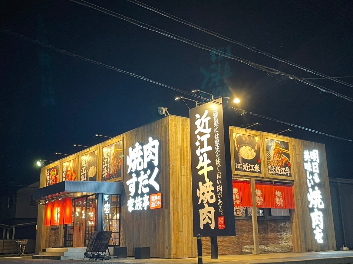 2019年1月、滋賀県JR守山駅前に「近江焼肉ホルモンすだく」1号店を出店。現在は滋賀県内にて18店舗展開する、滋賀県最大の焼肉ローカルチェーン。契約牧場直送の近江牛と、農場から直送される出来立てホクホクの近江米が看板メニューです。また、アプリ会員様にはウーロン茶が無料、キムチがお代わり無料、さらにキッズ会員様はアイスが無料など、ファミリーに特化した焼肉店です。「明日も美味しい焼肉を」をコンセプトに、地元の人から愛されるお店作りを目指しています。