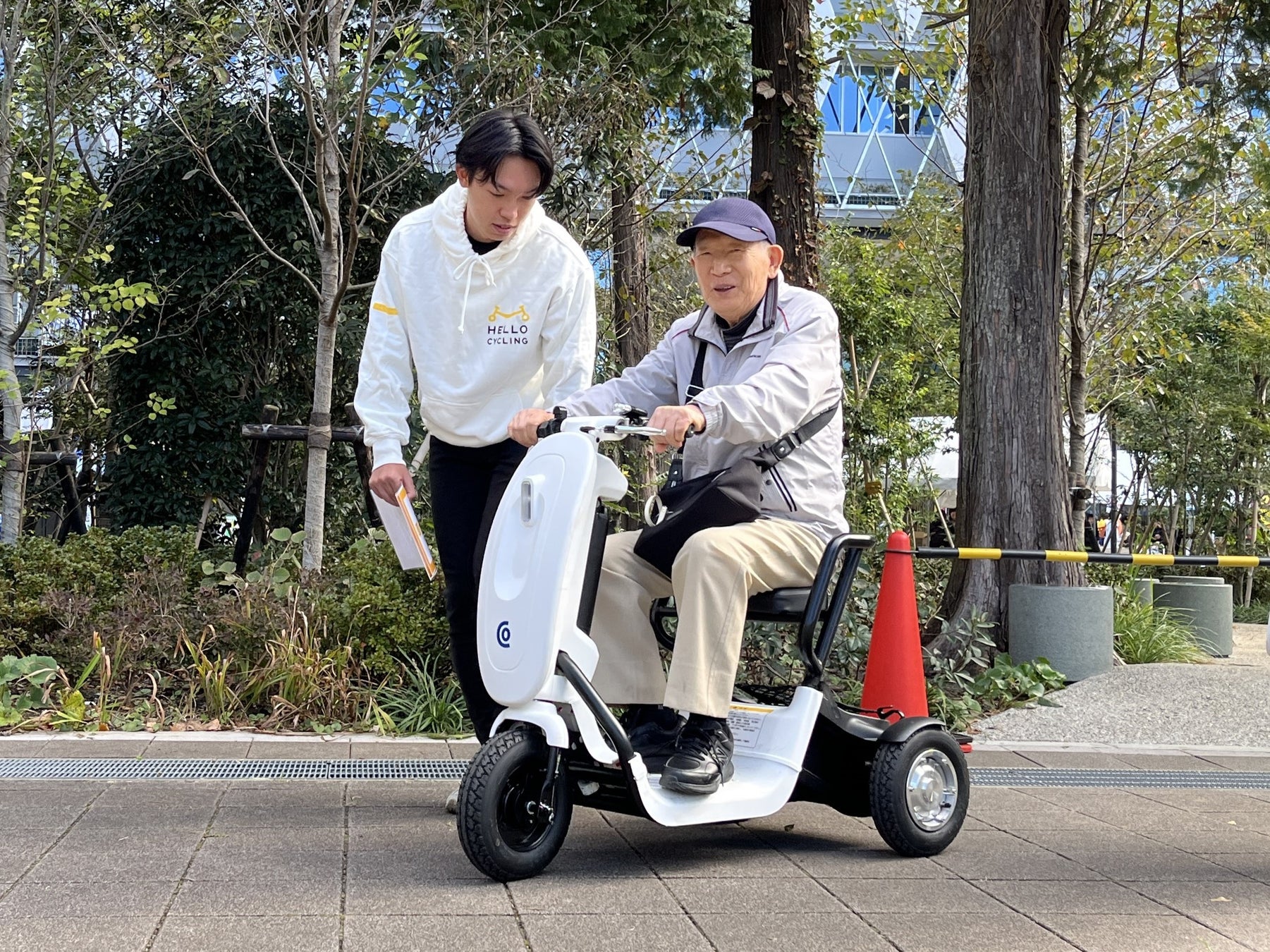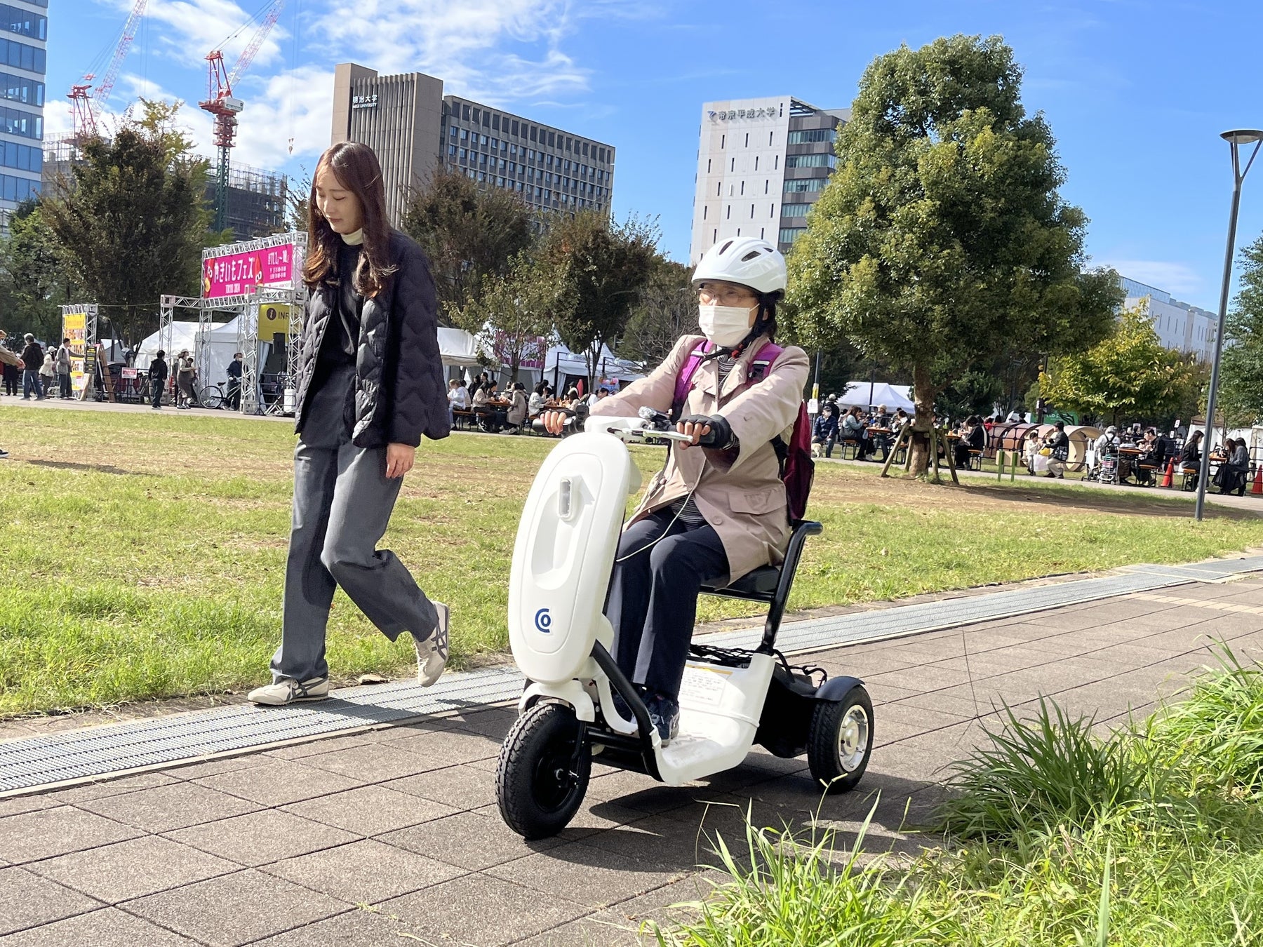 当社は、中野区役所ソトニワで特定小型原動機付自転車である電動サイクルと、移動用小型車の試乗会を実施しました。電動サイクルは歩行モードのみで試乗いただき、移動用小型車の試乗とあわせて約60名の方に試乗いただきました。特に移動用小型車を初めて目にする方が多く、実際に試乗していただくと、「小回りもきいて安定して走行できる」といった声を多数いただきました。