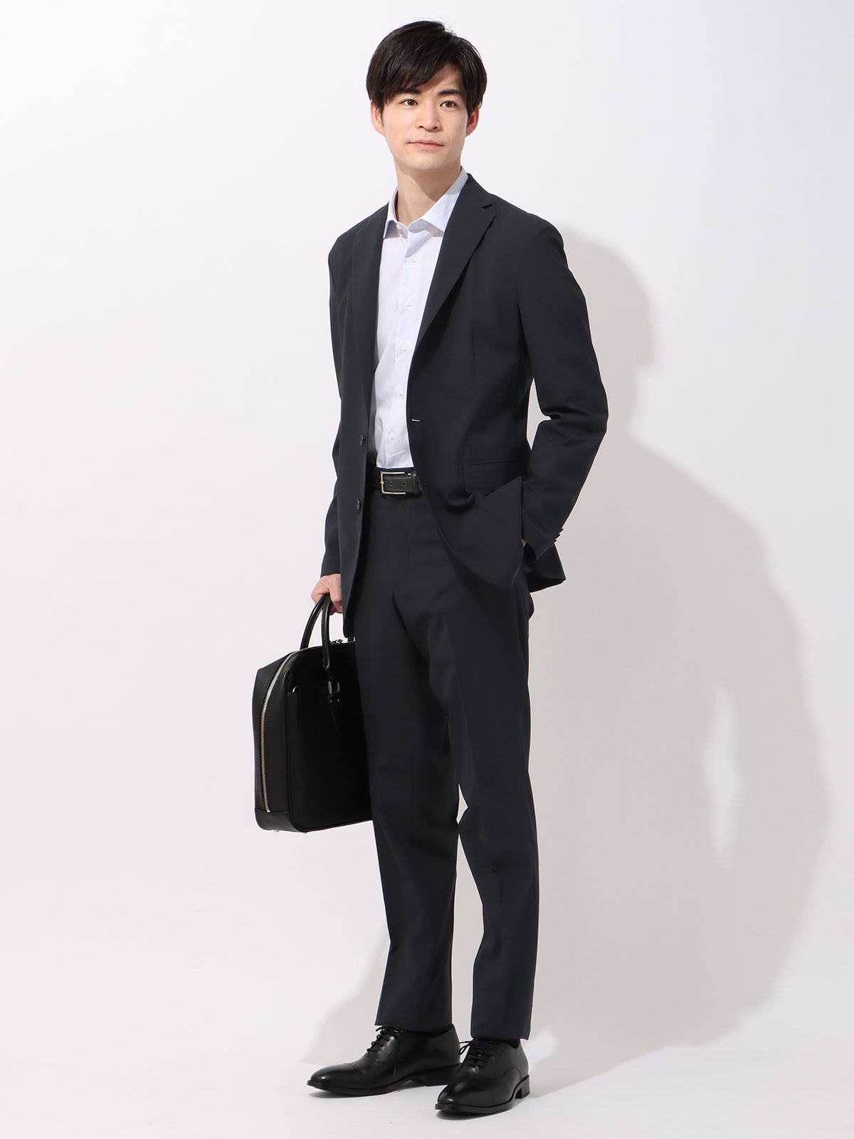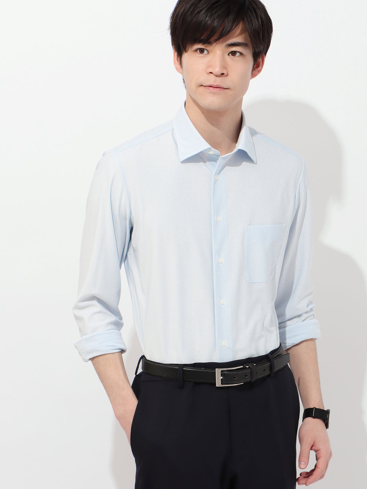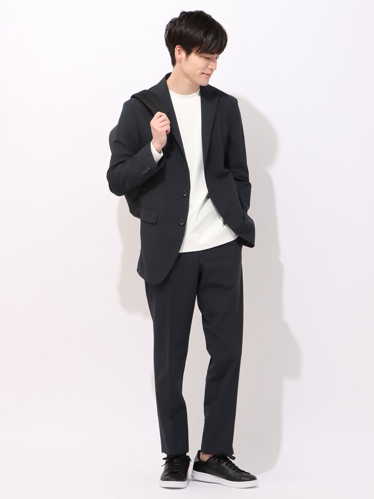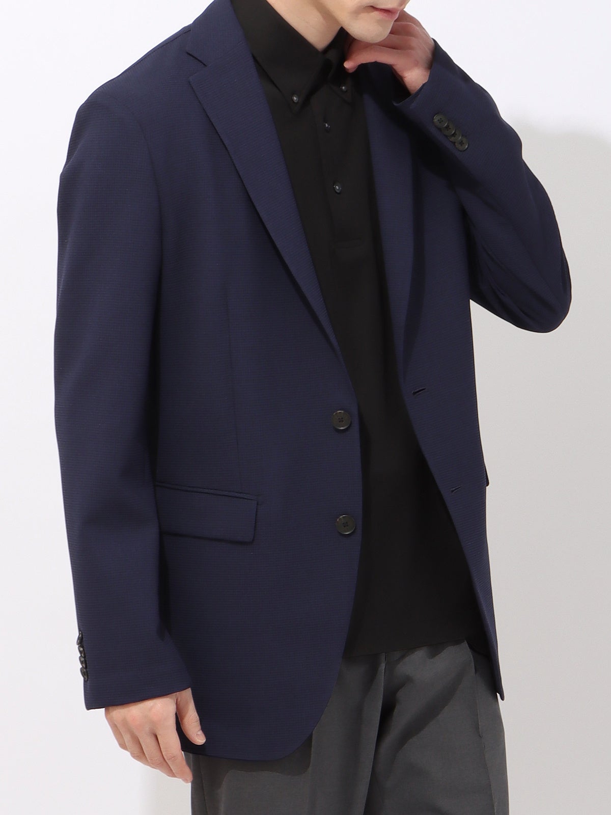 Tシャツからタイドアップまでコーディネートできる抜群の着回し力。ラペルなどに立体感ある型紙を使用しきちんと感を演出。お手入れが簡単で、清潔感とタイパを実現。