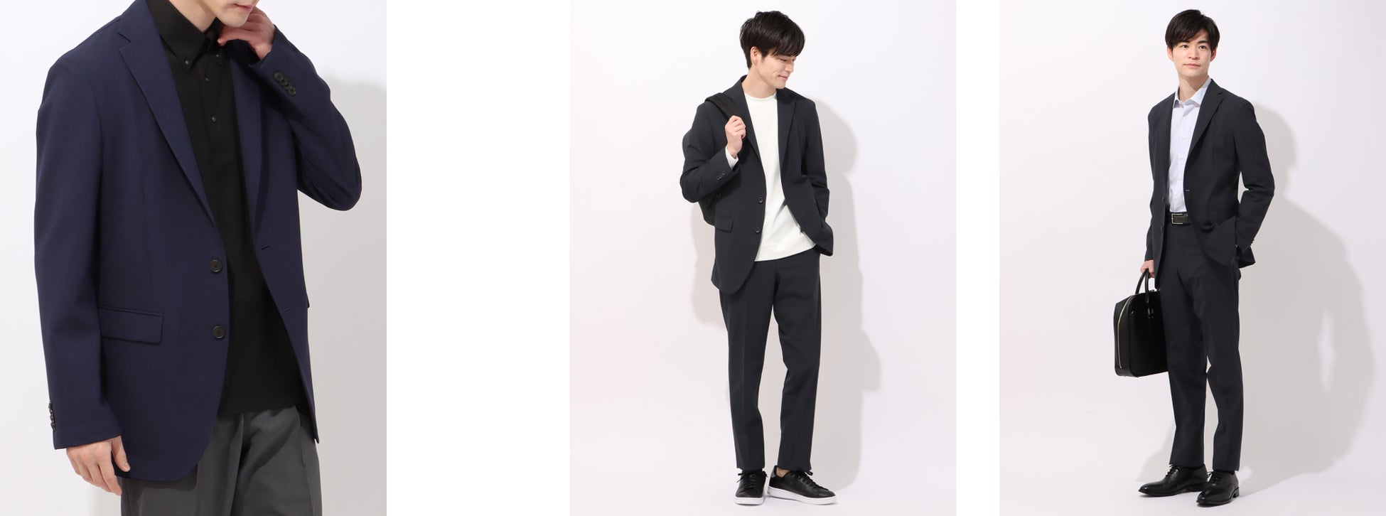 加えて、長年の商品開発で培った縫製技術や立体感のあるシルエットは、カジュアルウエアにはないスーツスタイルならではのディテールとして取り入れました。ビジネスシーンで求められる機能を備えつつ、きちんと感のあるシルエットを実現したカジュアルスタイルを提案します。