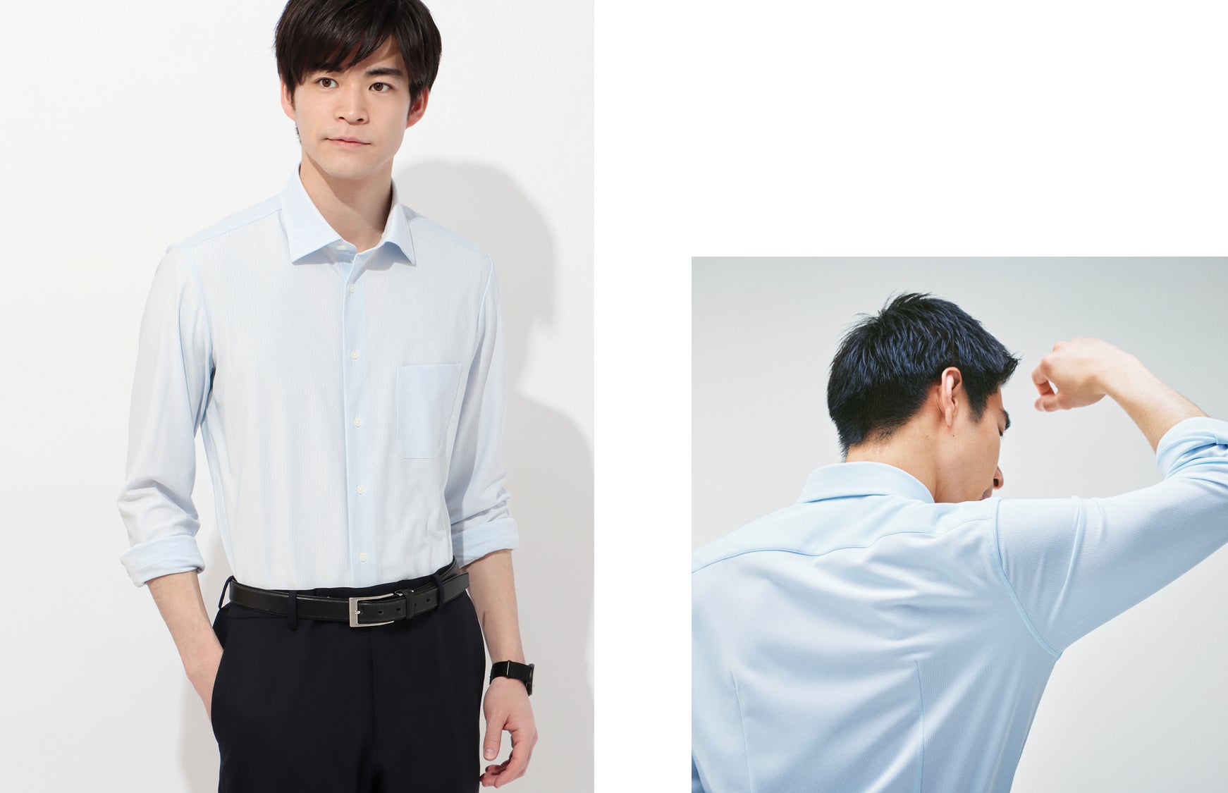アイテムはセットアップ・ジャケット・パンツ・シャツで、パンツには3シーズン用とひんやりとした着心地を体感できる接触冷感素材の2タイプを展開します。本シリーズでは、高いストレッチ性を持つ伸縮素材を採用することで、デスクワークや外出・出張など様々なビジネスシーンで動きやすく楽な着心地を実現。また、家庭洗濯が可能で、シワになりにくくアイロンがけが不要のため、タイパ(タイムパフォーマンス)にも優れています。さらに、汗をかいてもべたつかずさらりとした着心地や、洗濯後の乾きが早い速乾性も兼ね備え、気温が高まるこれからの季節にお手入れが簡単で、清潔感が得られる“最高な”企画となっています。