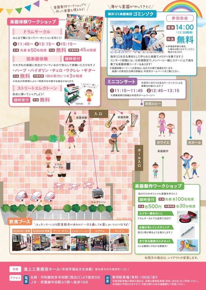 【愛知県半田市】5/18(日)楽器体験・楽器製作ワークショップが楽しめる屋外音楽イベント!『音楽マルシェ』を開催します!
