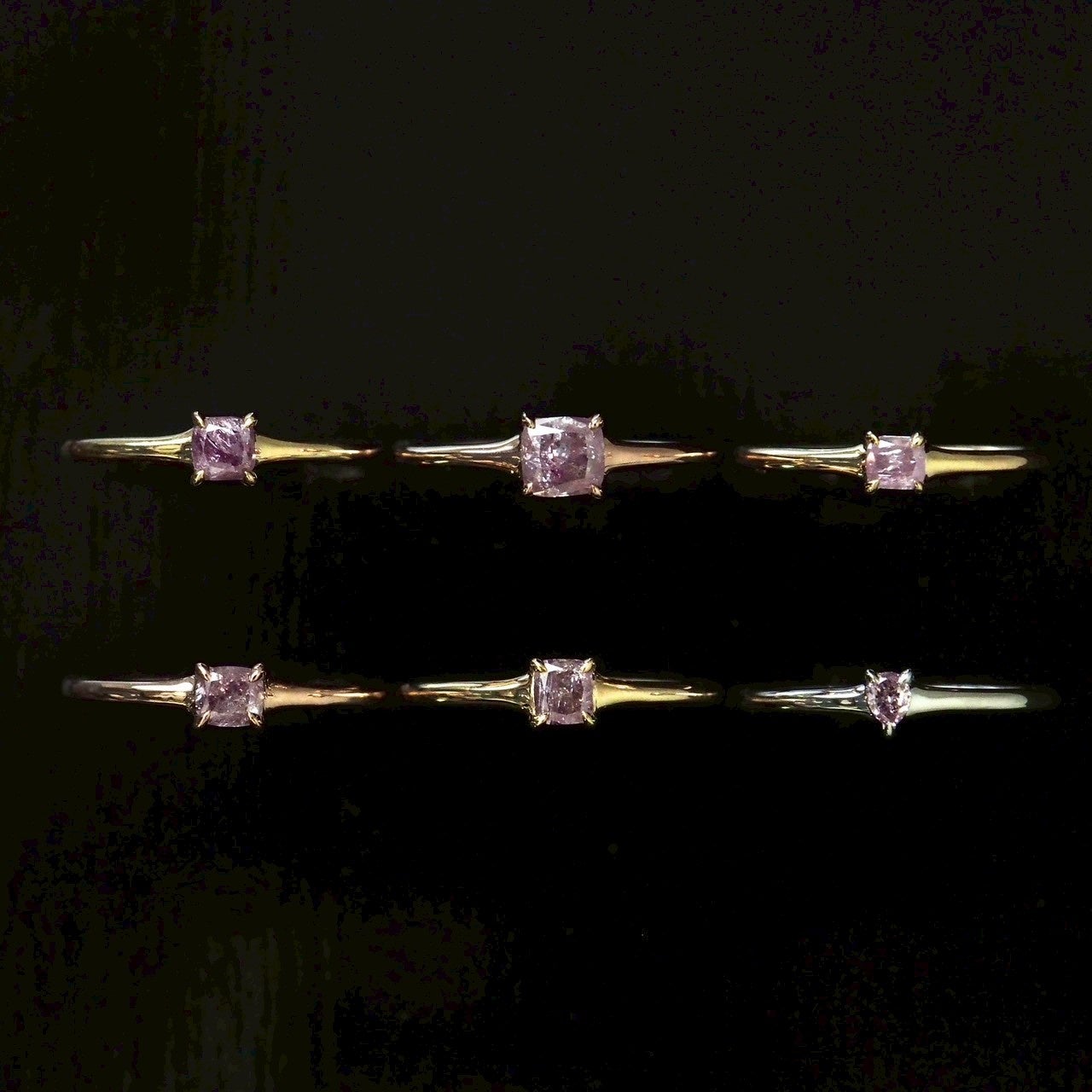 ソーティング付きのルースを用いた「リーベルトラッド・シリーズ」からは、さまざまな表情を見せるピンクダイヤモンドが登場。やわらかな色合いから深みのあるトーンまで、個性豊かなルースを、石の魅力を引き立てるシンプルなデザインでお仕立てしています。重ね着けにも映えるその佇まいは、パーセルならではの美意識が息づくジュエリーです。