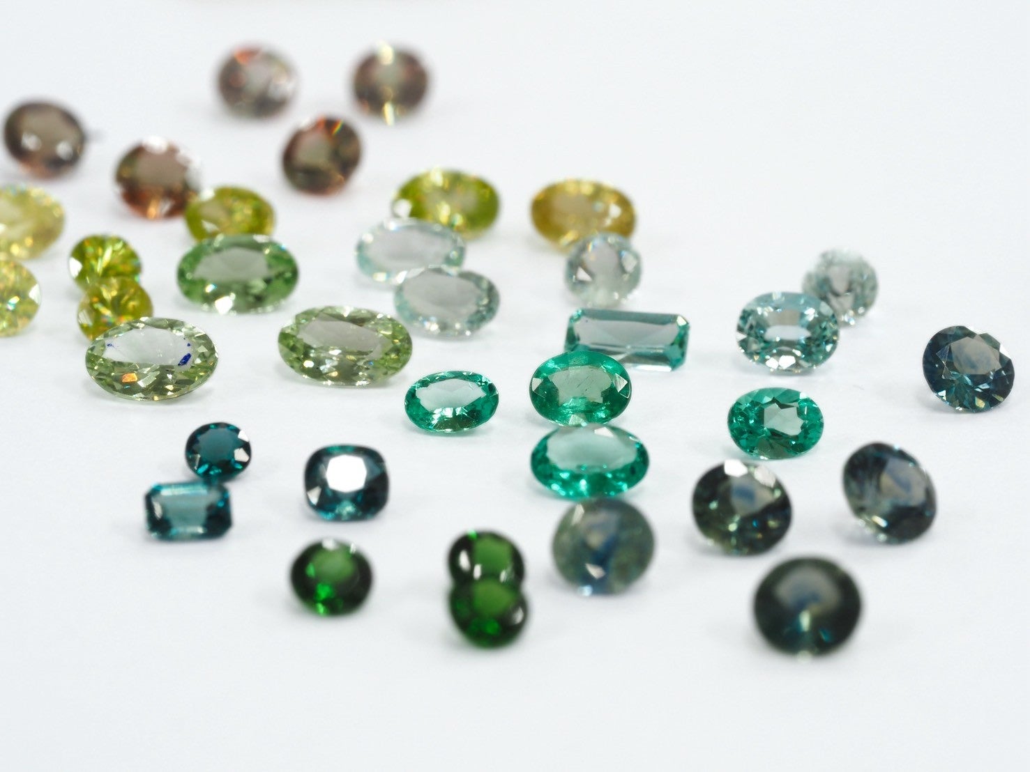 ミントグリーンガーネット、ツァボライト、アンダリュサイト、グランディディエライトなど、やわらかさと鮮やかさが同居するグリーン系ルースを厳選。