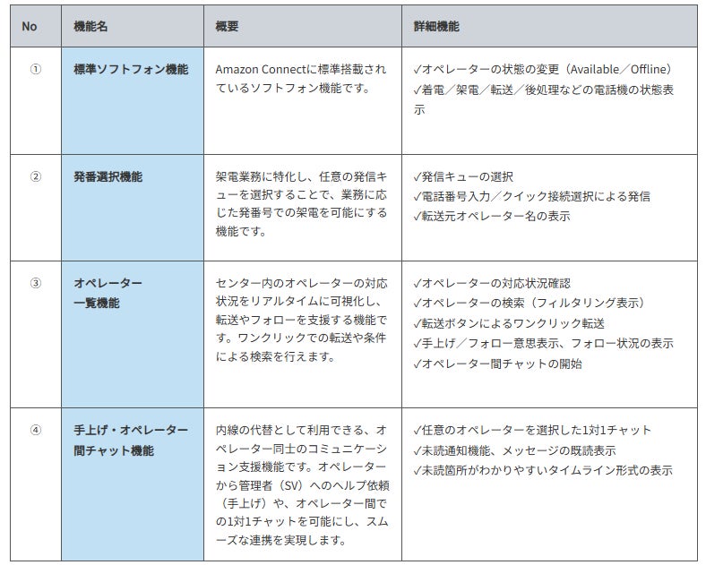 【Agent Workspace上で利用可能なコネクトレックの主な機能】