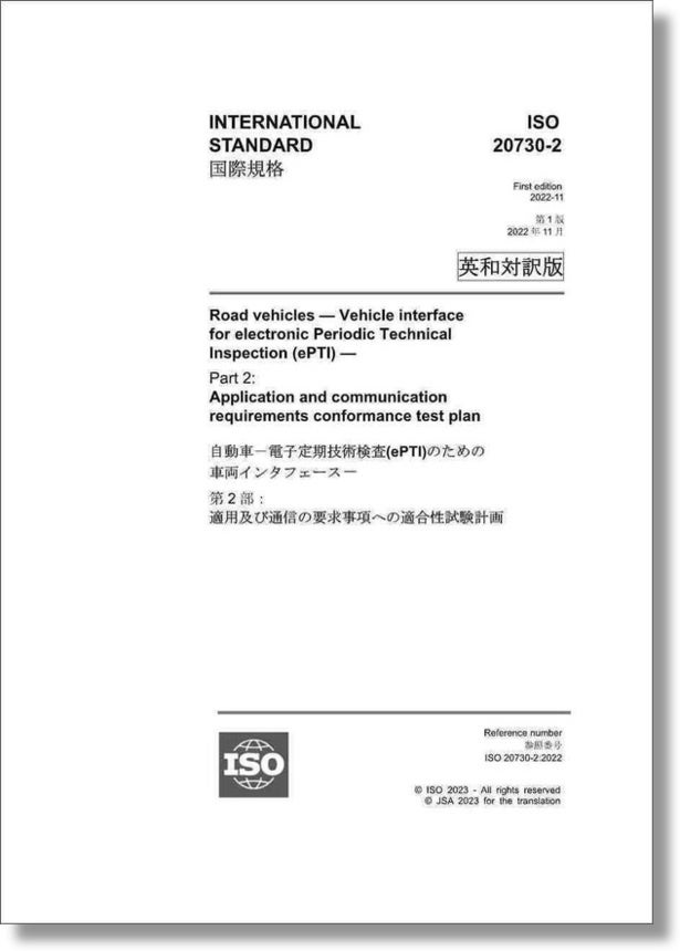 ●ISO 20730-2:2022「自動車-電子定期技術検査(ePTI)のための車両インタフェース-第2部:適用及び通信の要求事項への適合性試験計画」