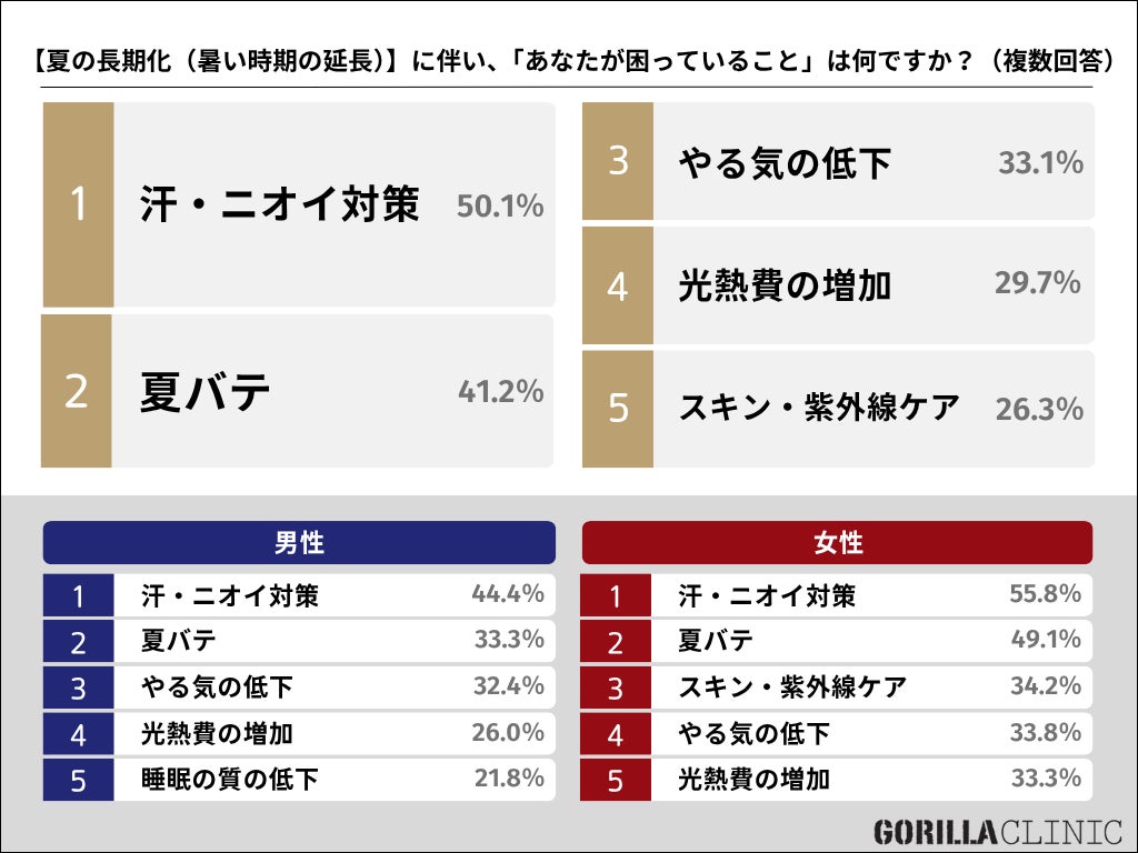 また、本リリース後半では【夏の汗やニオイに関する医師の見解】をゴリラクリニック統括医師・関本晃医師が解説いたします。