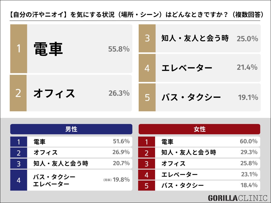 【質問詳細】【自分の汗やニオイ】を気にする状況(場所・シーン)はどんなときですか?(複数回答)
