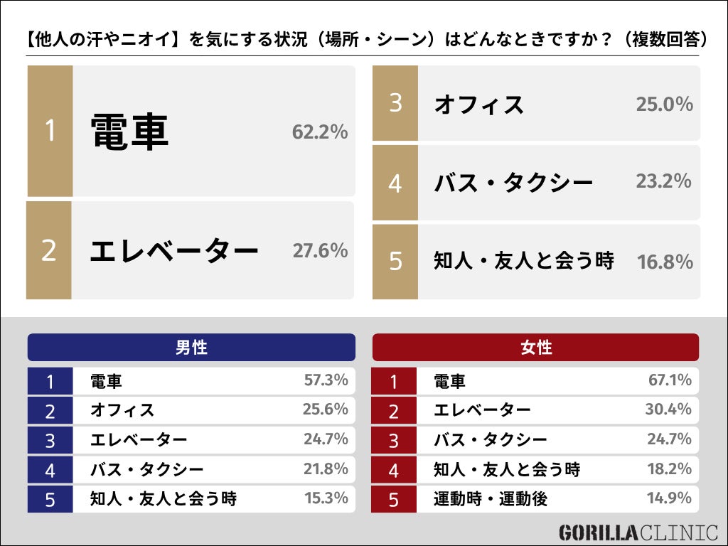 【質問詳細】【他人の汗やニオイ】を気にする状況(場所・シーン)はどんなときですか?(複数回答)