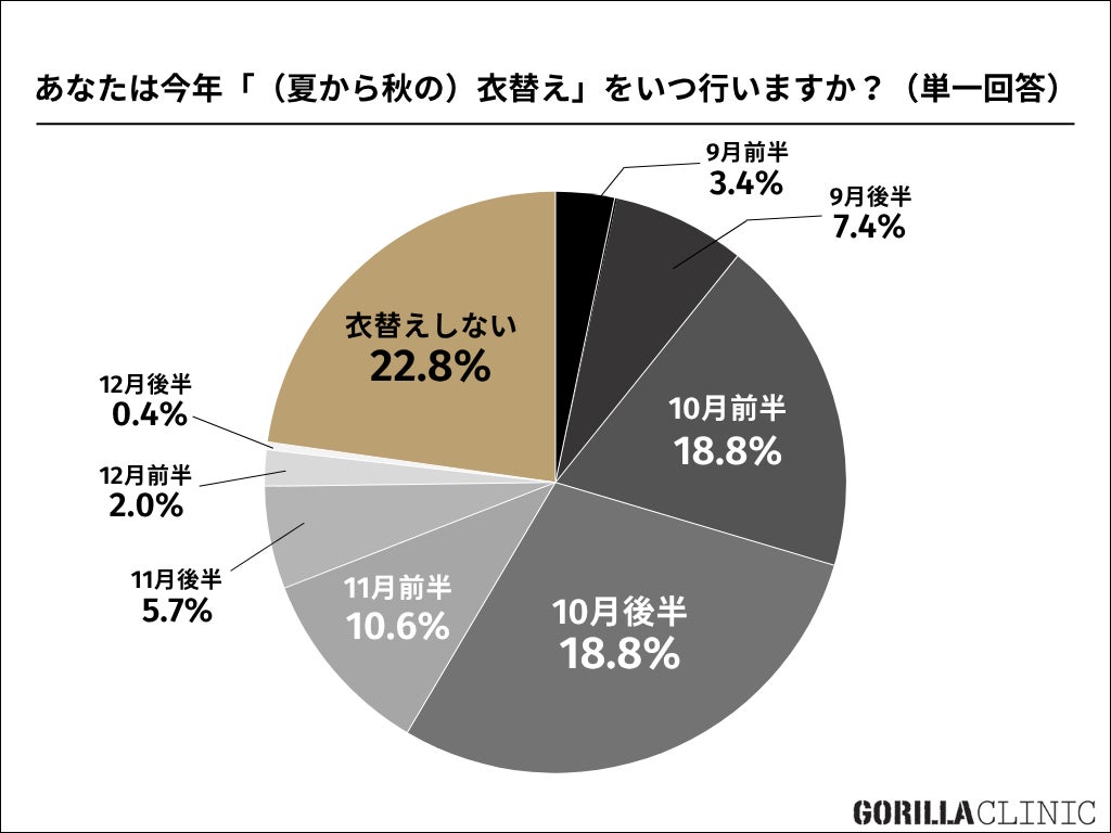 夏の長期化に伴い、衣替えも10月頃中心に変化していることが判明