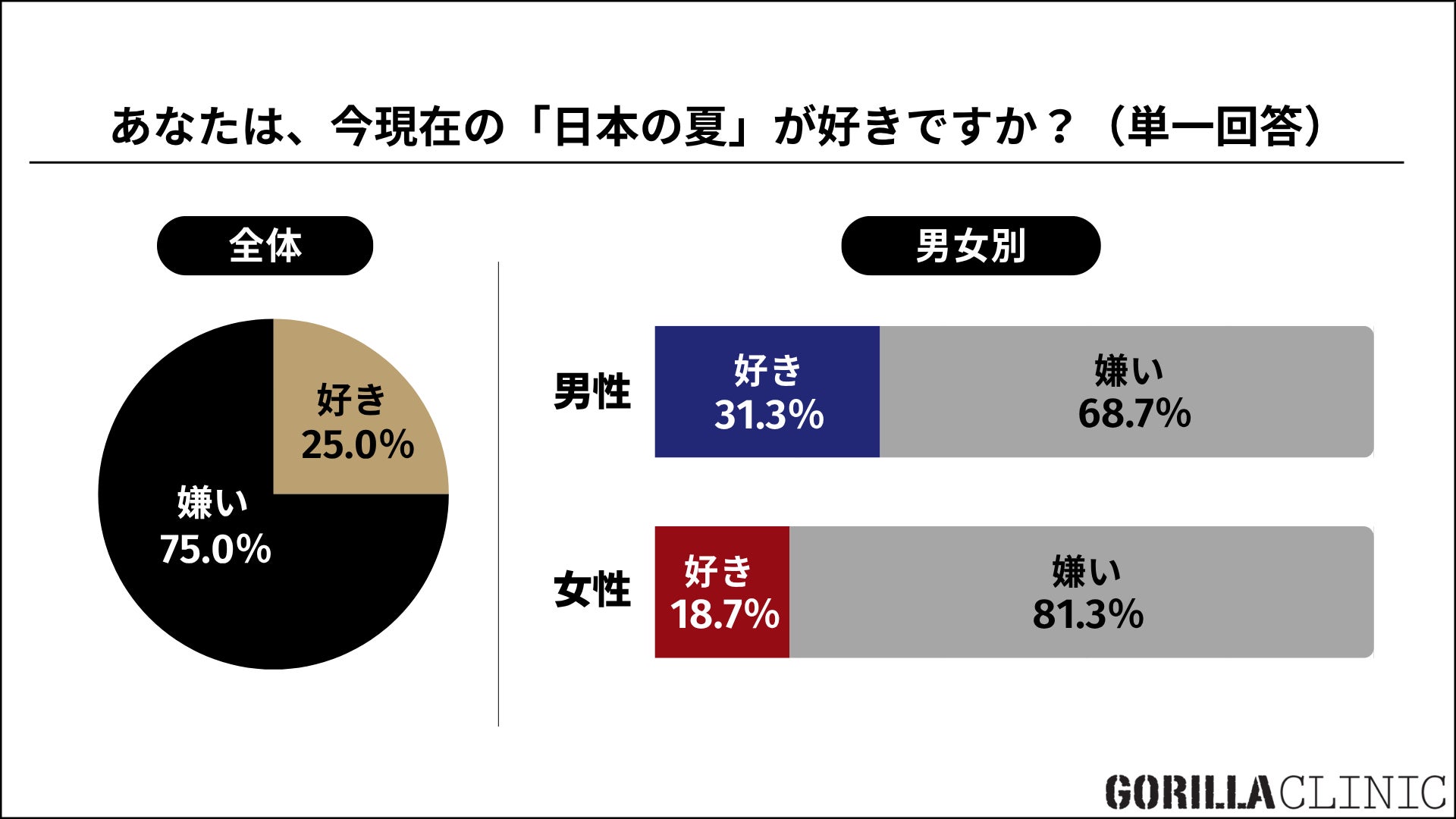 1. 4人に3人が「今の日本の夏は嫌い(75.0%)」と回答