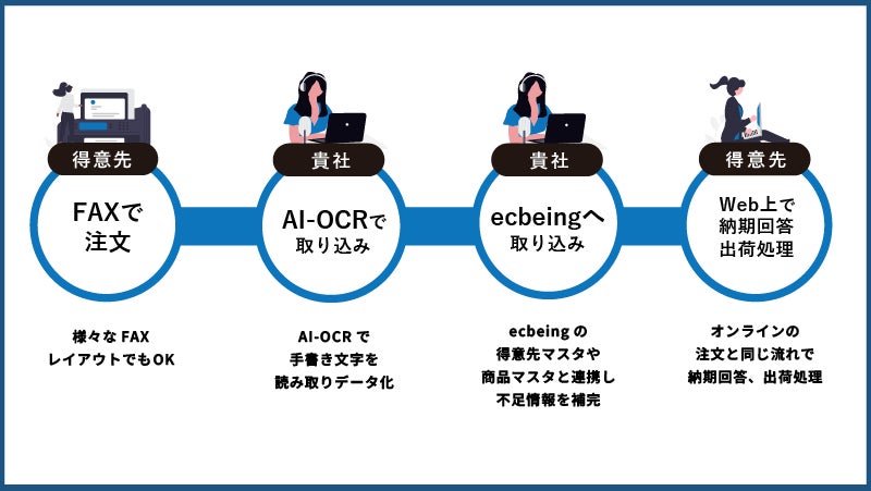 株式会社ecbeing(イーシービーイング 本社:東京都渋谷区、代表取締役社長:林 雅也、以下「弊社」)は、FAX注文をAI-OCR(AI-Optical Character Recognition)※1で読み込み、EC構築プラットフォーム「ecbeing」(以下「ecbeing」)に取り込むことで、アナログ注文とオンライン注文の納期回答や出荷処理を一元化する「AI-OCR連携ソリューション」をリリースしたことをお知らせいたします。