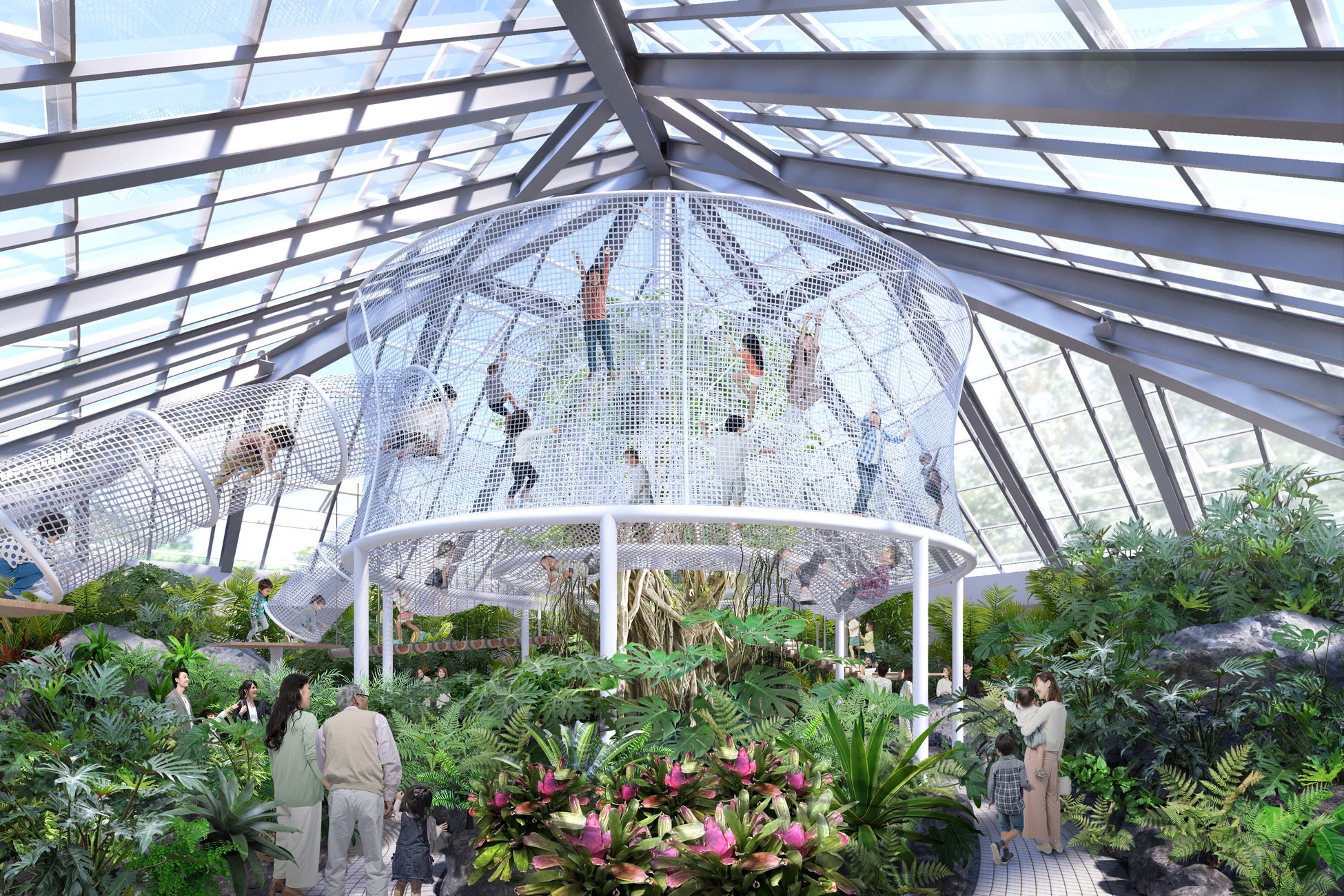 また観賞用として親しまれてきた温室は、屋外とは違う距離感やスケール感をいかして、花や緑をさまざまな角度で見たり、触ったり、没入して遊べる体験を提供する温室アスレチックへとリニューアル。知的好奇心を刺激することで学びの姿勢を育てるとともに、花摘み温室も完備し、雨天時や冬季の花摘みにも対応します。