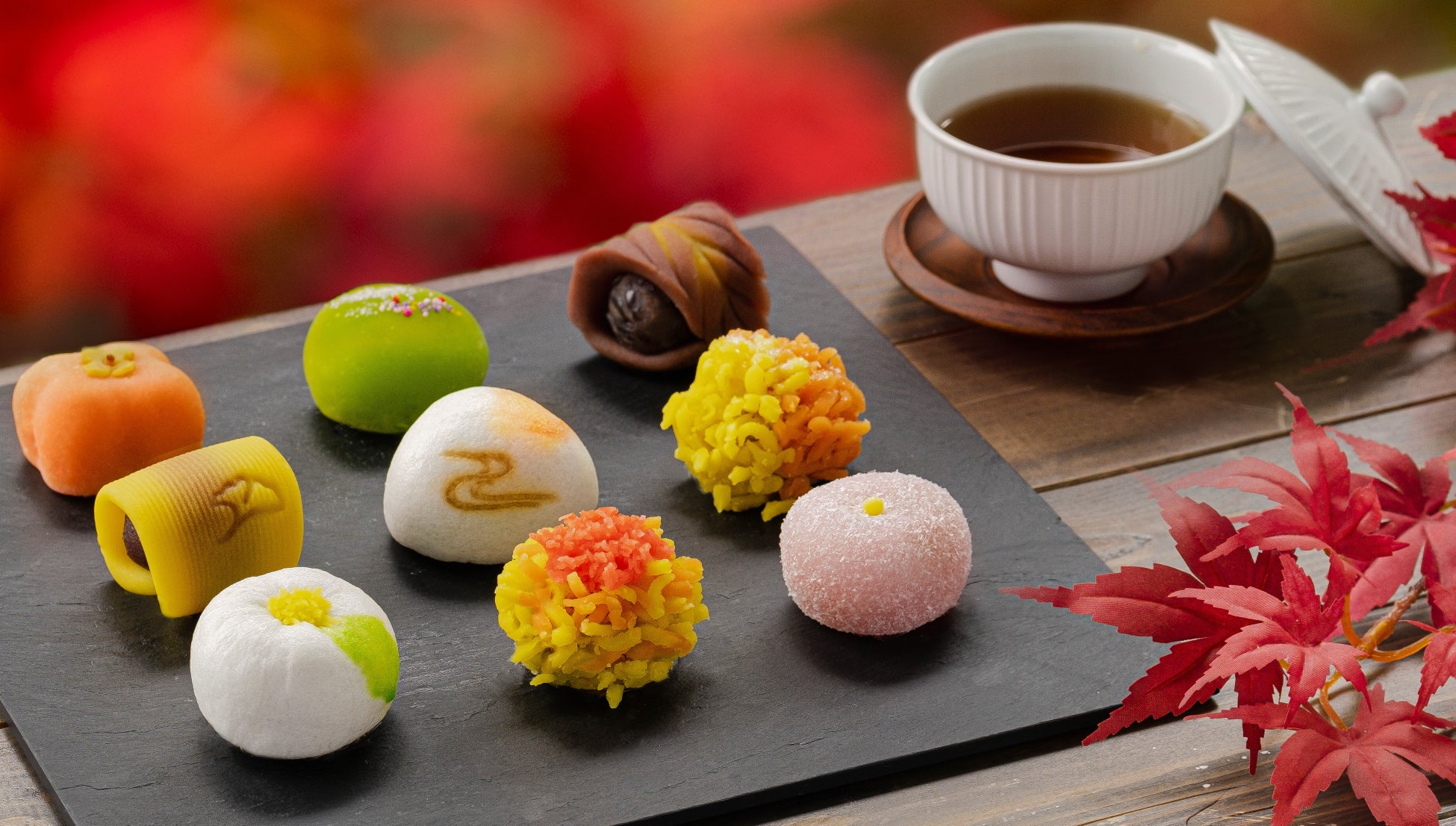 盛衰激しく刹那的に移り変わる秋の情景を表現した、美しく儚い、この期間だけの上生菓子。そのビジュアルは、SNS映えも期待できます。