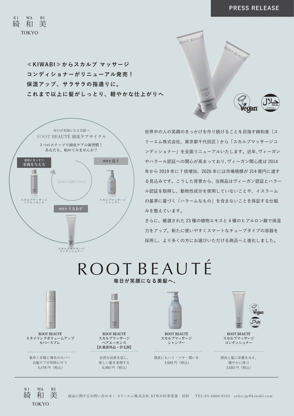 ≪KIWABI≫からスカルプ マッサージ コンディショナーがリニューアル発売! 保湿力アップ、サラサラの指通りに。これまで以上に髪がしっとり、軽やかな仕上がりへ