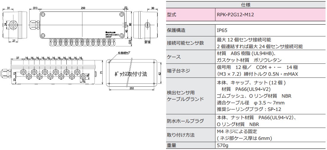 株式会社ビー・アンド・プラス(本社:埼玉県比企郡小川町、代表取締役社長:亀田 篤志)は、リモートセンサシステム用の中継ボックス「RPK-P2G12-M12」を販売開始しました。