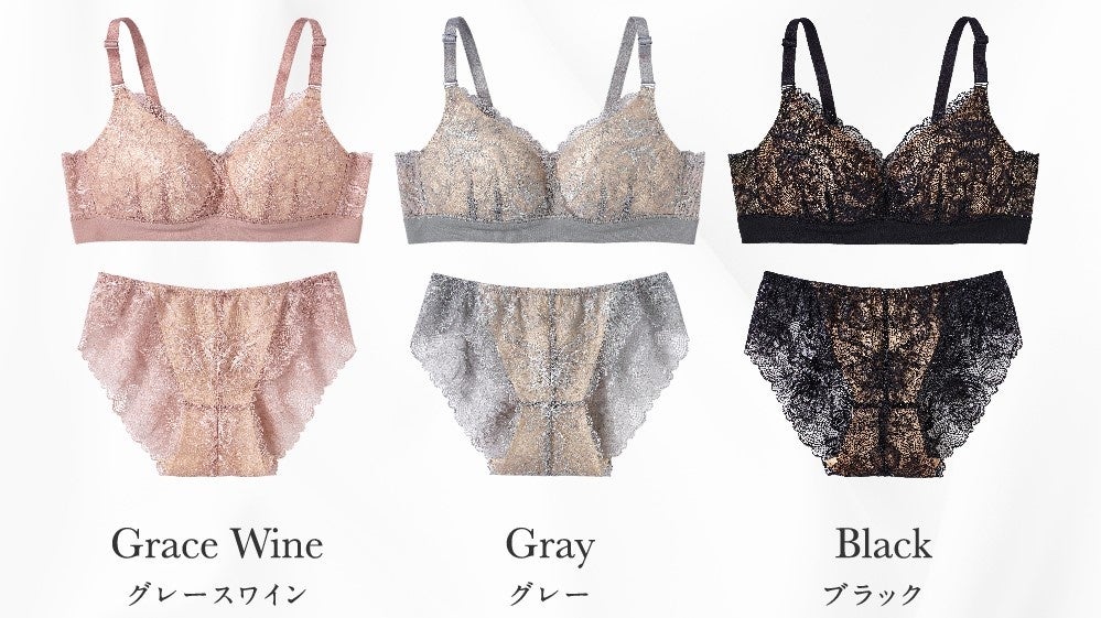 カラー展開:ブラジャー、ショーツともにグレースワイン、グレー、ブラック(全3色)