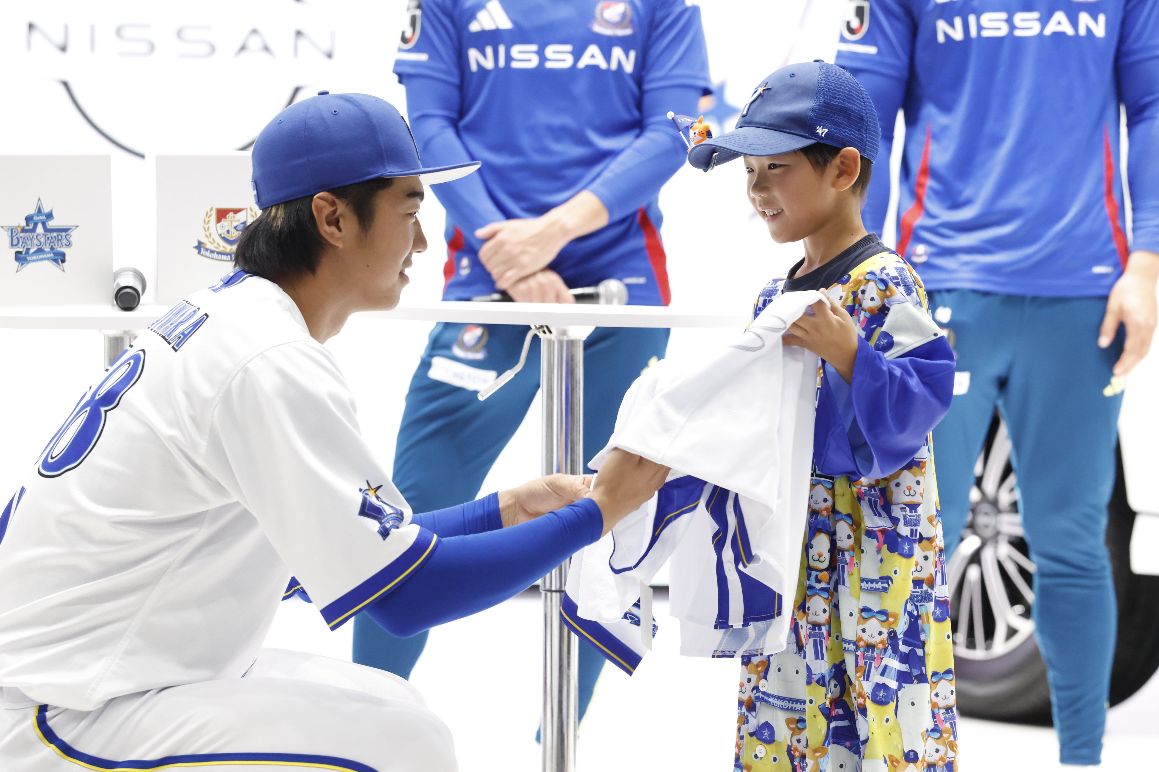 また、会場内の展示車を使用した「宝探しクイズ対決」にて、F・マリノスのジョルディ・クルークス選手にちなんだ問題では「ルークス」から、DeNAベイスターズの牧秀悟選手にちなんだ問題では「日産アリア」からお宝を見つけ出し、会場を盛り上げました。