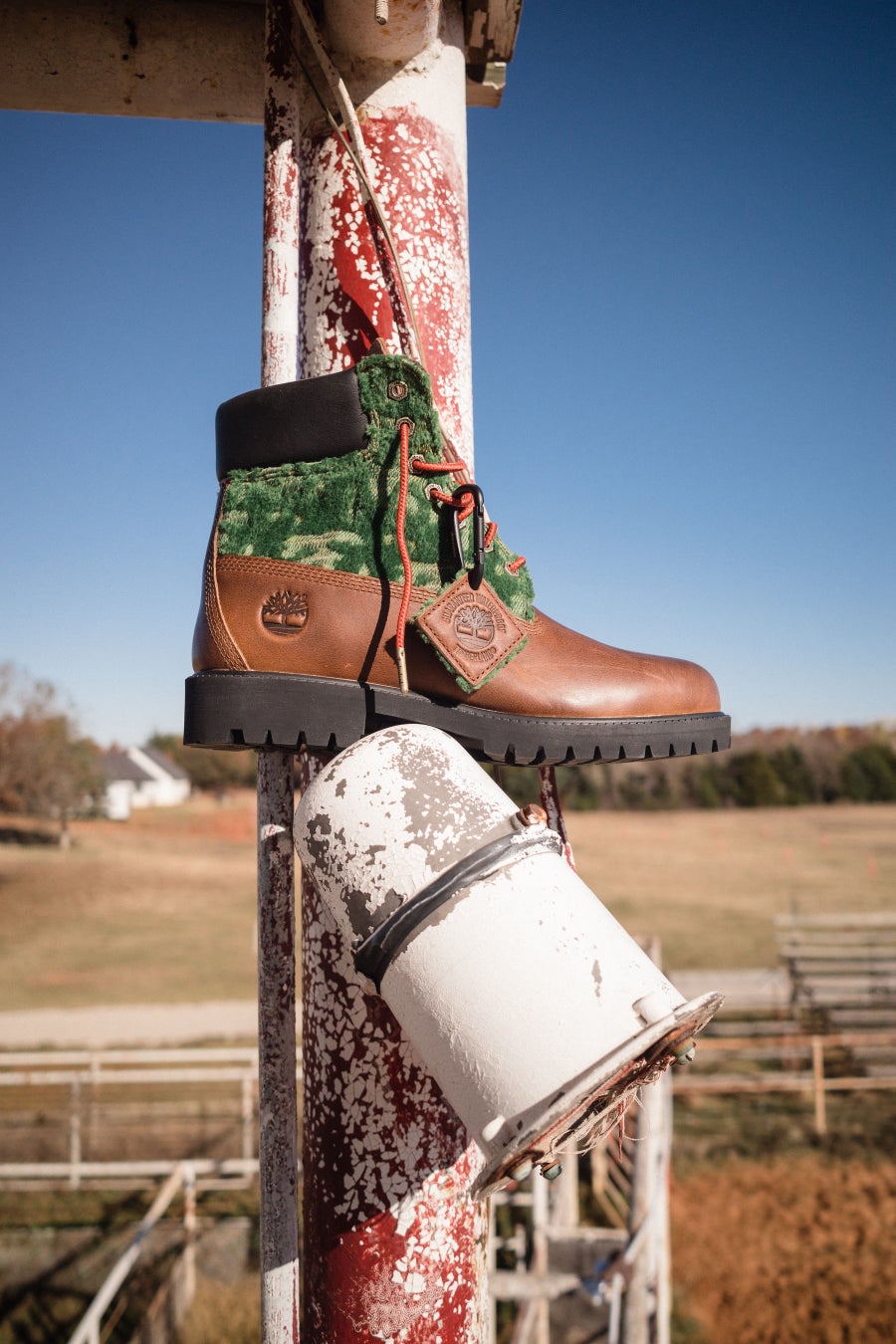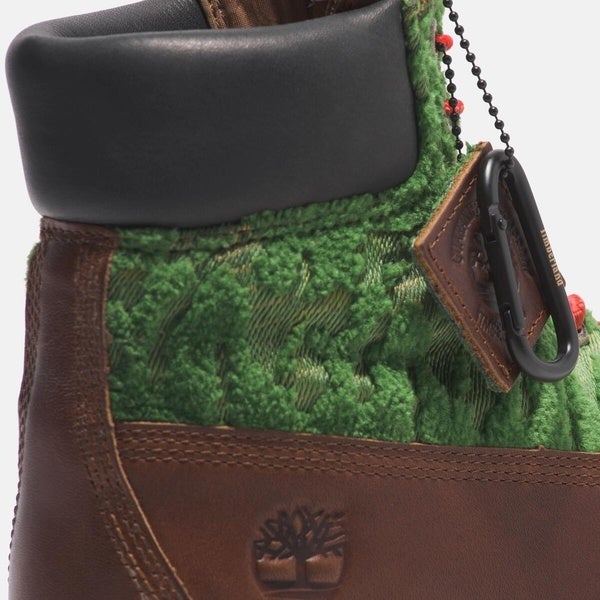 この6インチプレミアムウォータープルーフブーツは、アッパーをネイチャーグリーンとテクスチャーにインスパイアされた“ヘアリー ”グリーンスエードを採用し、シューレースホールはサンドブラスト仕上げに再構築しました。新作ブーツの発売に合わせ、ユニセックスで着用出来るフーディーやポケットTシャツも取り揃えています。