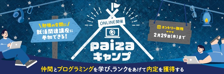 25卒学生向け、全国の仲間と一緒にプログラミング力アップと内定獲得を目指す「paizaキャンプ」(無料)を開講!