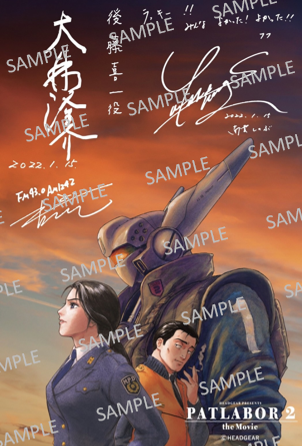 アクリルプレートの絵柄は本年2月に公開した4DX版「機動警察パトレイバー2 the Movie」を記念して発売された、サウンドリニューアル版パンフレットの表紙イラスト(高田明美さん作)を用いたものです。