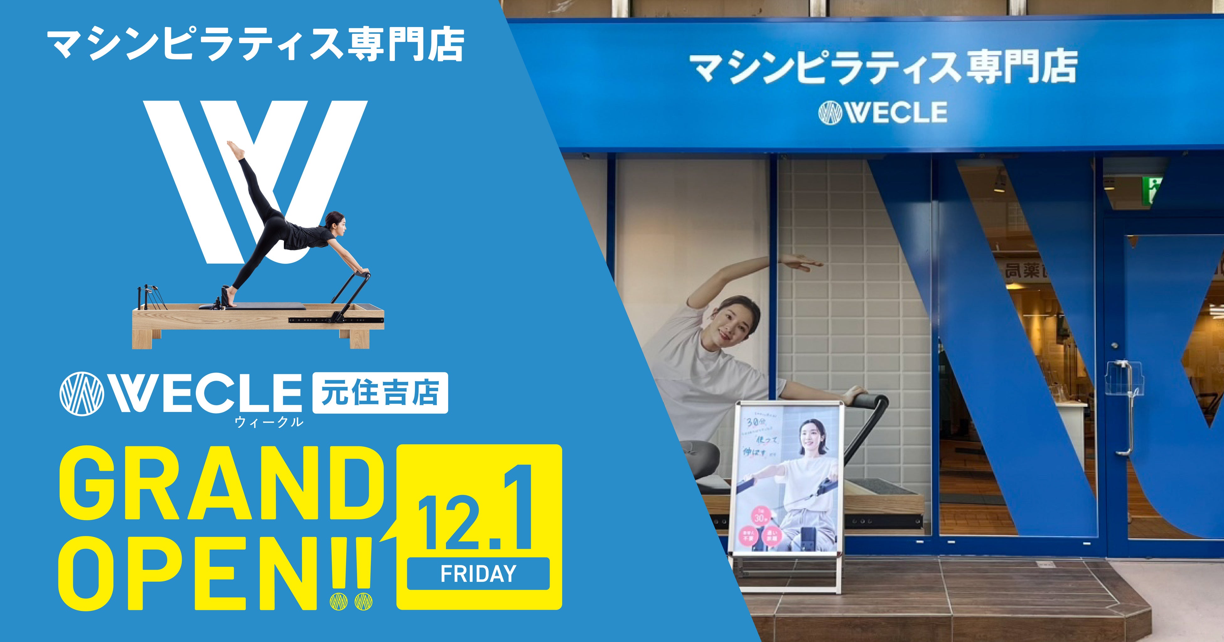 30分ピラティスの「WECLE(ウィークル)」が、東急電鉄「元住吉駅」徒歩3分に関東で9店舗目をグランドオープン!12月1日(金)から先着150名様限定でお得なグランドオープン入会キャンペーンを実施!